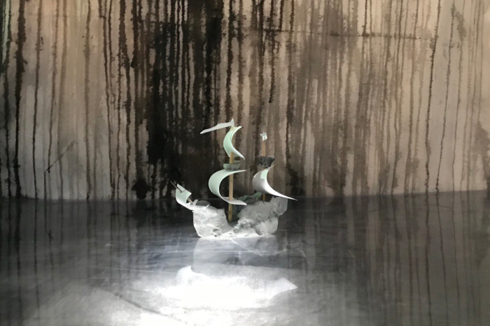Корабль — рабочий кадр со съемок 2-ого фильма о художнике Михаиле Тихонове (находится в производстве); Работа скреп-арт художника Игоря Иванова с выставки «Темные воды», вошедшая в фильм о галерее 14/45.