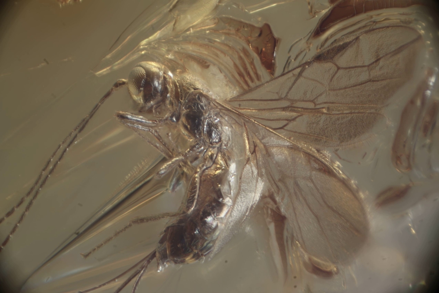 В балтийском янтаре нашли новый вид насекомых. Его назвали Palaeorhoptrocentrus kanti в честь философа Иммануила Канта, сообщили в Музее янтаря, где находится образец.