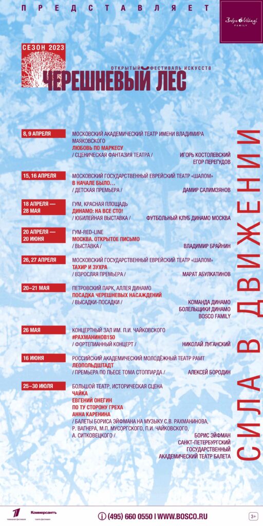 «Черешневый лес» в этот раз объединил не только театр, живопись, музыку, но и спорт. Спектакли, концерты, выставки и, конечно, любимые посадки-высадки пройдут как на хорошо известных, так и на новых площадках.