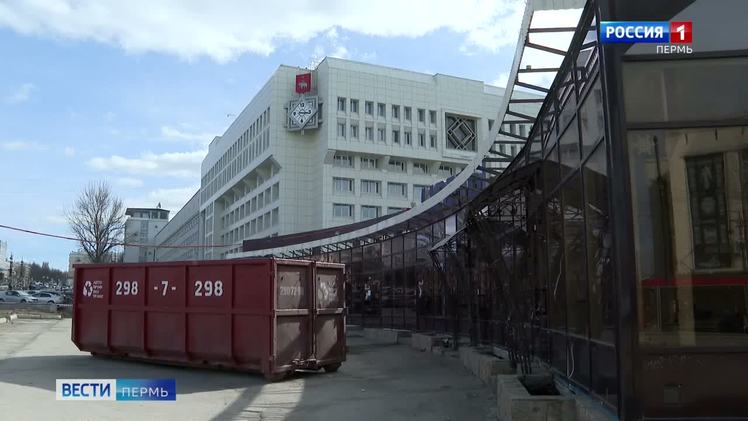В Перми приступили к сносу последнего торгового павильона возле ЦУМа. На данный момент около строения установили большой контейнер для строительного мусора, и, по словам подрядчика, работы по демонтажу будут разделены на несколько этапов. Для начала убрать всё из помещения, после чего можно будет сносить и сам павильон.