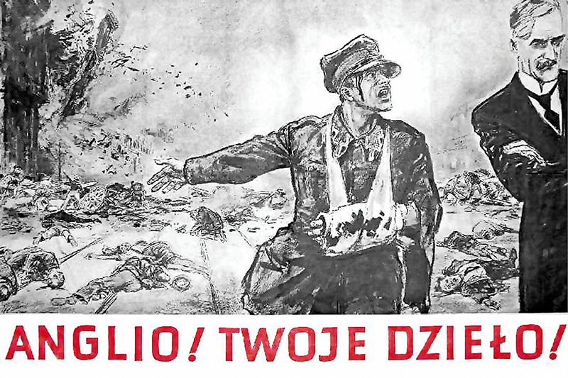 Никто, надеемся, не забыл этот плакат 1939 года. Он о том, что Англия обещала Польше военную помощь в случае агрессии Германии, но после нападения гитлеровцев 1 сентября 1939 года на Польшу Англия и Франция отказались от своих обязательств защищать Польшу, и та рухнула за две недели, а правительство сбежало в… Лондон, откуда всю войну квакало о своих претензиях на власть в Варшаве.