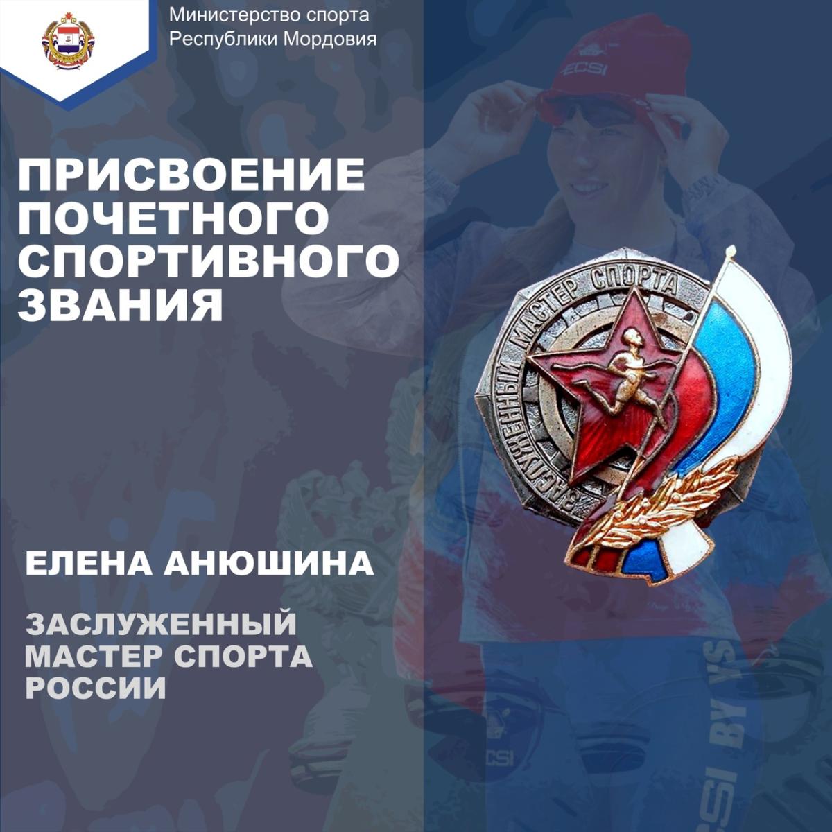 Кроме того, Анюшина неоднократно становилась победительницей и призером чемпионатов России. 29-летняя спортсменка стала 16-м заслуженным мастером спорта среди уроженцев Мордовии в новейшей истории. Начиная с 2000 года этого звания удостаивались 9 скороходов (Роман Рассказов, Денис Нижегородов, Ольга Каниськина, Елена Лашманова, Сергей Бакулин, Валерий Борчин, Сергей Кирдяпкин, Анися Кирдяпкина, Владимир Канайкин), трое борцов классического стиля (Алексей Мишин, Сергей Емелин, Артем Сурков) и двое борцов на поясах (Евгений Строганов, Роман Юсупов), а также один тяжелоатлет (Алексей Юфкин). Приказ о присвоении Анюшиной почетного спортивного звания заслуженный мастер спорта России датирован 4 апреля.