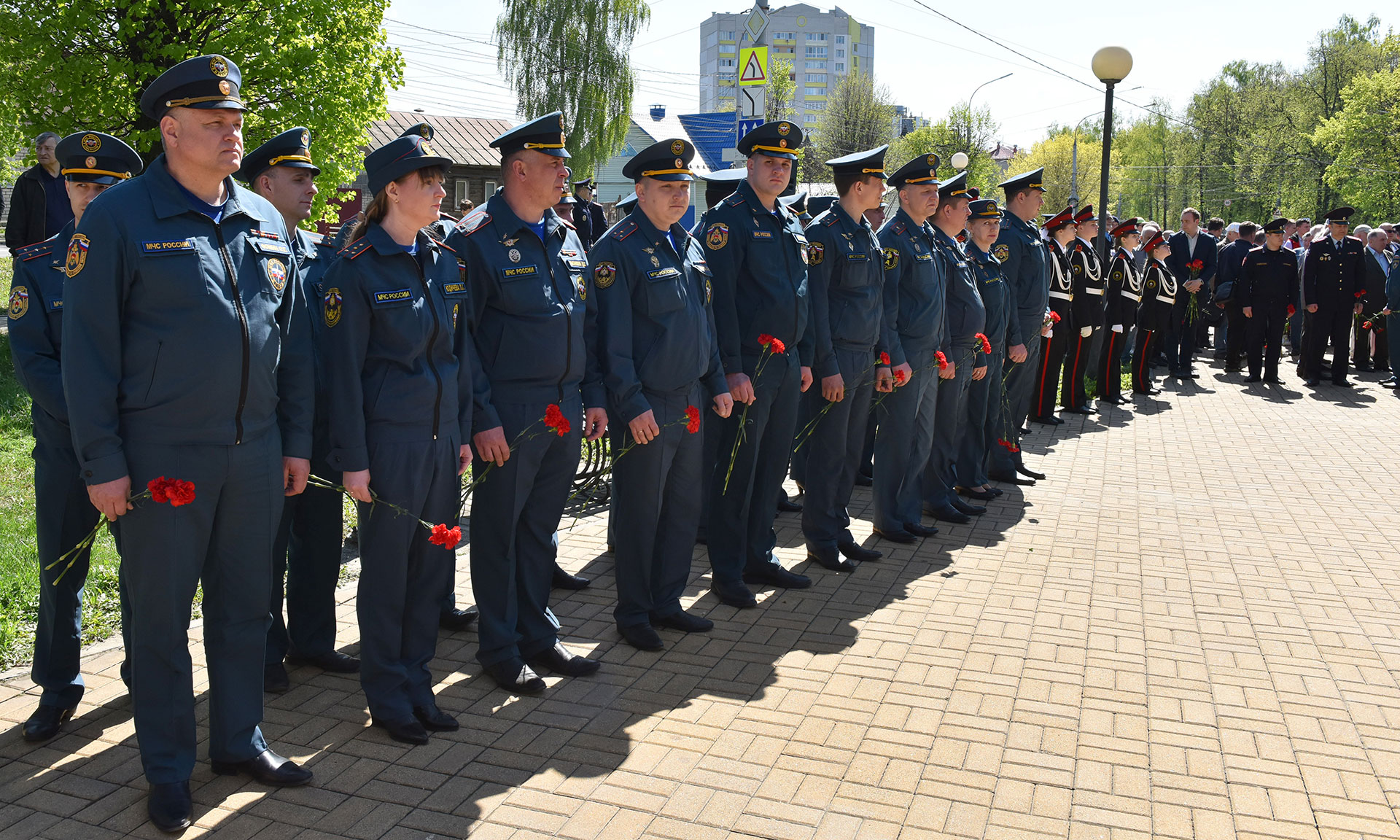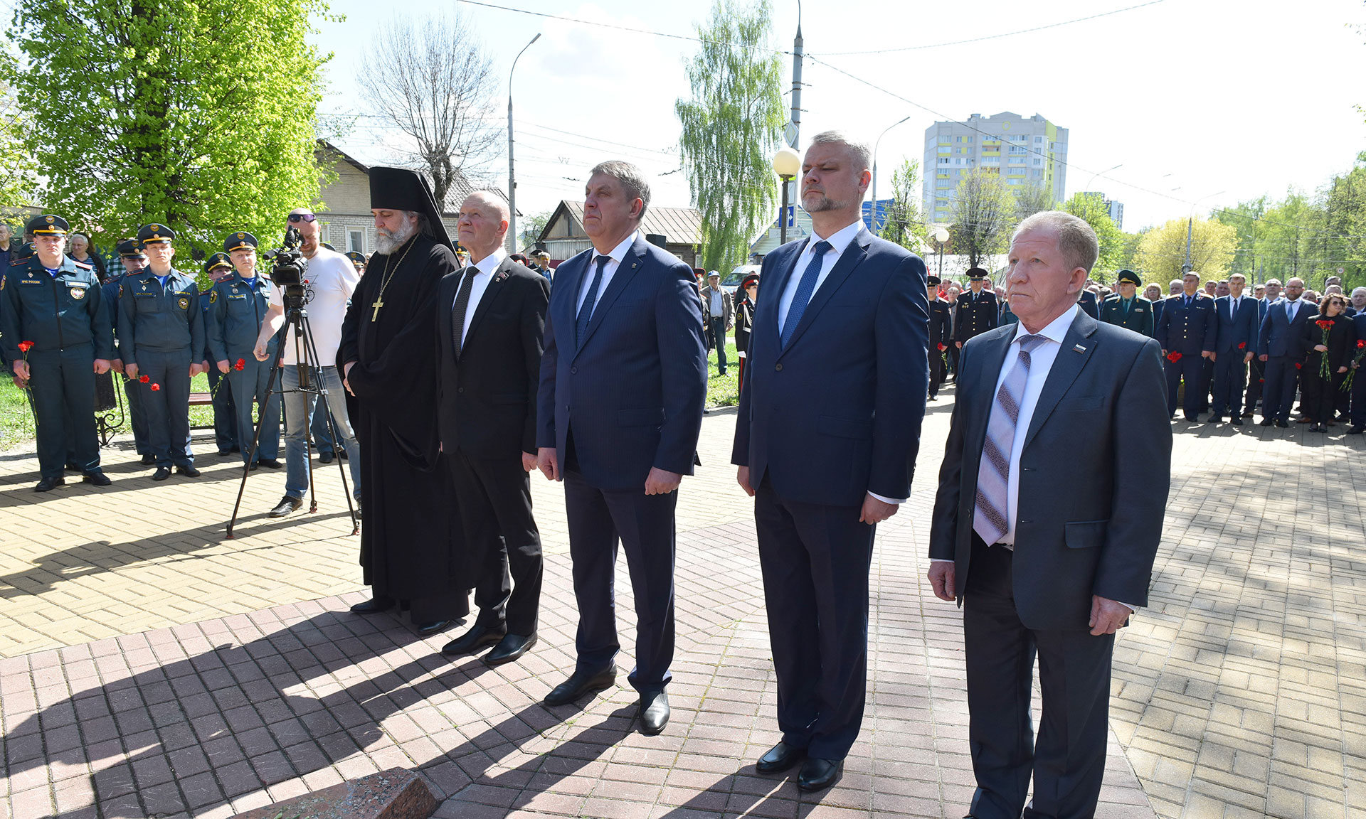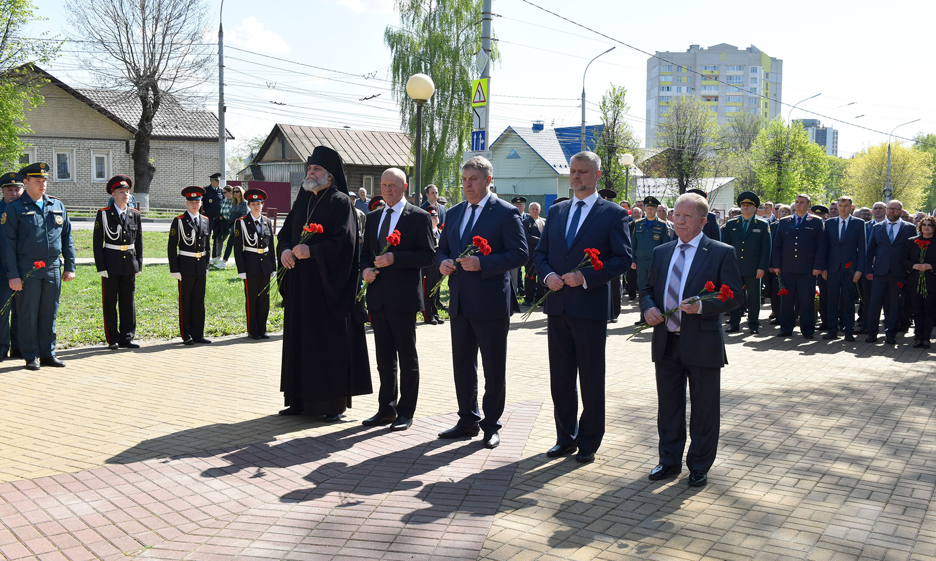 В знак памяти о тех, кто принял на себя первые радиационные удары, кто отдал свои жизни, корзину с цветами и цветы к подножию памятника жертвам чернобыльской катастрофы возложили Губернатор Брянской области Александр Богомаз, заместитель председателя Брянской областной Думы Владимир Пронин, главный федеральный инспектор по Брянской области Андрей Дьячук, руководитель следственного управления Следственного комитета РФ по Брянской области Максим Лукичев, начальник управления ФСИН России по Брянской области Сергей Герасимов, начальник Брянской таможни Сергей Санакоев, заместитель начальника управления ФСБ России по Брянской области Роман Кожемяченко, заместитель начальника управления Росгвардии по Брянской области Андрей Борисов, заведующий отделом по взаимодействию церкви и общества Брянской епархии иеромонах Корнилий (Недбаевский), председатель правления Брянской областной общественной организации инвалидов-чернобыльцев «Союз Чернобыль» Вячеслав Карнюшин, уполномоченный по правам человека в Брянской области Вячеслав Тулупов, заместители Губернатора Брянской области, врио заместителя Губернатора Брянской области, заместитель председателя Брянской областной Думы, руководители города Брянска, а также участники ликвидации аварии на Чернобыльской атомной электростанции, представители общественных организаций, медицинских учреждений, представили учебных заведений, волонтеры, юнармейцы.