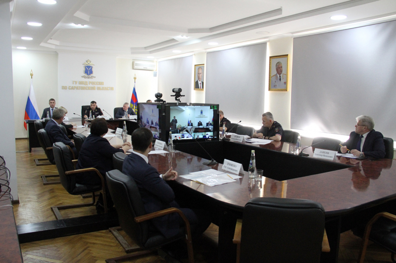 В нем приняли участие прокурор Саратовской области Сергей Филипенко, начальник регионального УФСБ Сергей Уйманов, начальник Управления Федеральной службы войск национальной гвардии России по Саратовской области Генадий Макаров, представители органов исполнительной власти, руководители структурных подразделений главка, а также в режиме видео-конференц-связи руководители территориальных органов МВД России на районном уровне Саратовской области.