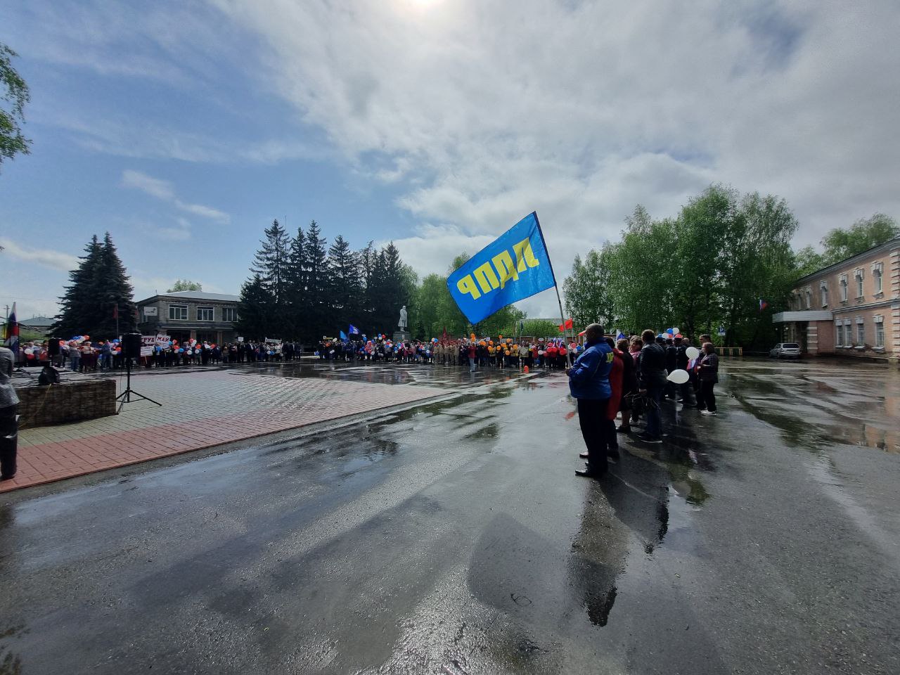 Несмотря на дождь, представители трудовых коллективов, организаций и предприятий нашего района, профсоюзных, общественных и молодёжных объединений встали сегодня в праздничные колонны, чтобы пройти торжественным маршем по центральной улице нашего села.