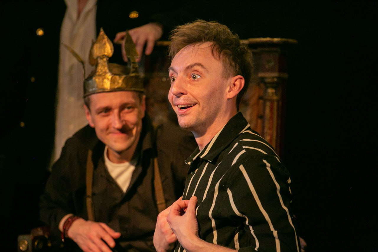 Федор Пшеничный ставит пьесу как скоморошину, то есть отсылая к русскому песенному фольклорному жанру с его сатирическим, пародийным, абсурдным началом. Герои в этом спектакле одеты в современную одежду и имеют условные обозначения своих ролей, например корону. И если в пьесе Филатова стихотворные тексты распределены между скоморохами, Царем, Федотом и другими персонажами, то в спектакле Пшеничного все действующие лица обозначены как скоморохи.