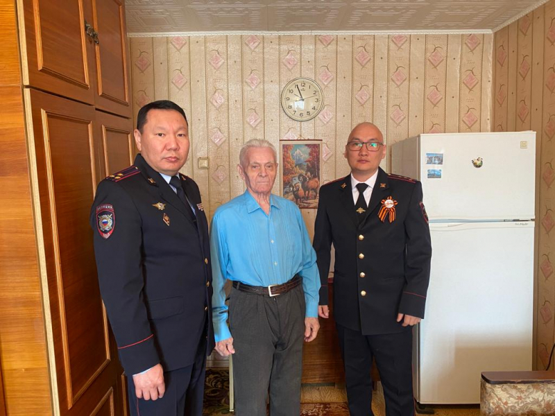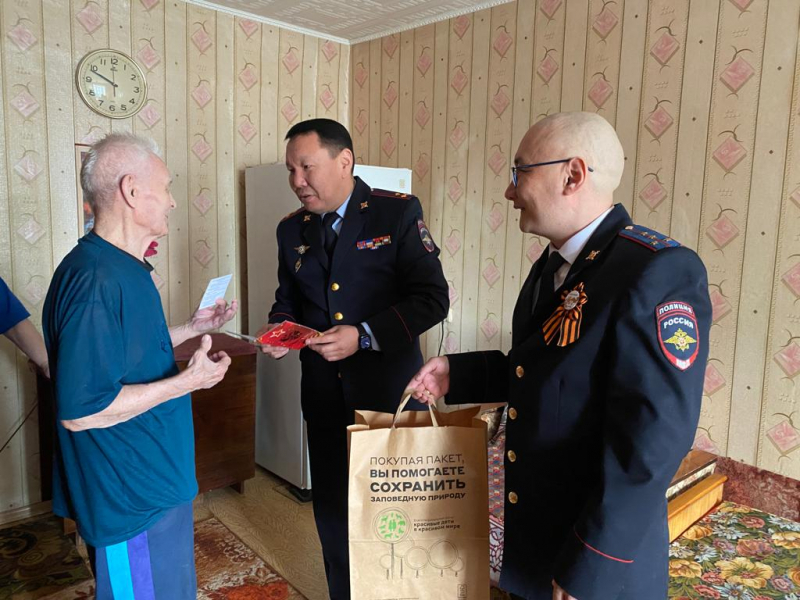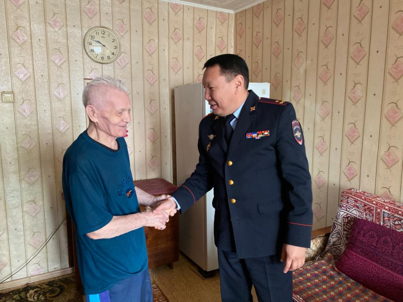 В преддверии Дня Победы начальник МУ МВД России «Якутское» полковник полиции Михаил Кондаков и начальник дежурной части МУ МВД России «Якутское» капитан полиции Александр Григорьев навестили и поздравили труженика тыла, ветерана органов внутренних дел Строева Семёна Акимовича. 87-летний хозяин дома радушно принял гостей, которые передали ветерану сердечные поздравления с Днем Победы и слова признательности. Полицейские поблагодарили Семёна Акимовича за самоотверженный и тяжелый труд во имя Великой Победы и, пожелав доброго здоровья и долгих лет жизни, вручили памятные подарки.