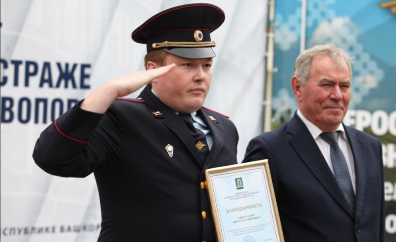 Также представители МВД России и МВД по Республике Башкортостан вручили заслуженные награды за высокие результаты в оперативно-служебной деятельности, профессионализм и личную инициативу в работе по предупреждению преступлений старшему участковому уполномоченному Отдела МВД России по г. Октябрьскому майор полиции Алексею Ишбулдину, старшему участковому уполномоченному Отдела МВД России по Туймазинскому району майору полиции Рамзилю Варину, участковому уполномоченному Отдела МВД России по Буздякскому району майору полиции Данису Кабирову, участковому уполномоченному Отдела МВД России по Белебеевскому району капитану полиции Андрею Захарову.