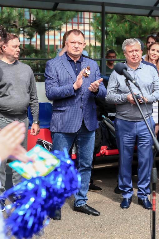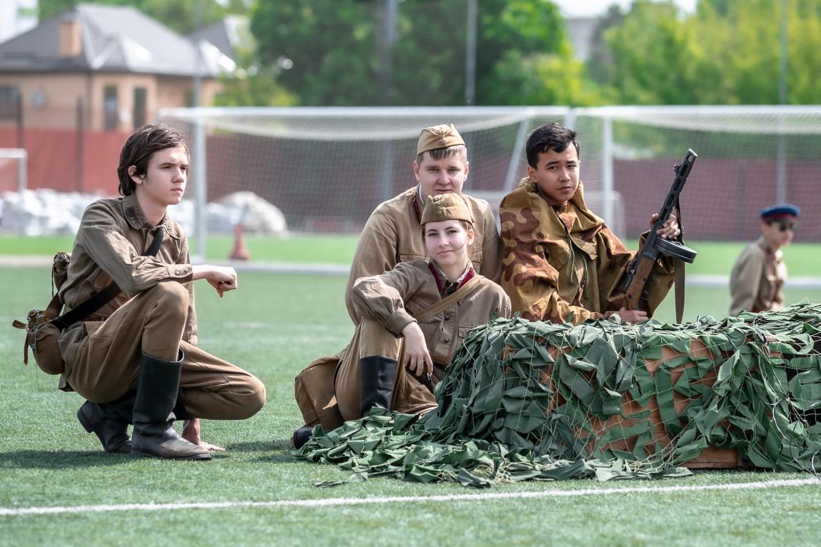 Особую атмосферу происходящему дополняла игра девушек-барабанщиц и духового оркестра Межшкольного эстетического центра. Все желающие могли отведать каши из установленной на стадионе «Полевой кухни».