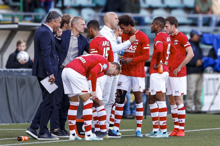 Но его ограниченность как игрока помогли ему стать тренером, которым он является сегодня, потому что они улучшили его понимание того, как заставить команду функционировать как единое целое. Он был живым доказательством того, что игрок не может выполнять свою работу, если его коллега не делает свою. Он всегда собирался стать тренером, перейдя из состава команды в тренерский штаб «Зволле» сразу после завершения карьеры. «Вы можете видеть заранее, что некоторые игроки станут тренерами», — говорит де Грааф. «Я также играл с Альфредом Шредером (бывшим тренером "Аякса")… и теперь никого не удивляет, что и он и Слот оба тренеры». «Он спрашивал тренера, почему они используют ту или иную тактику. А в раздевалке он говорил с командой (например) о том, как прессинговать или защищаться. Он спрашивал: "Почему мы делаем это именно так? Не лучше было бы сделать это вот таким образом?". Он делал предложения по тактике своим тренерам». «Но он делал это хорошим способом, не дерзил: он спрашивал у тренера: "Что вы думаете об этом?". Он также очень быстро понимал, что пытаются сделать противники». «В то время он уже использовал аналитический подход», — сказал в прошлом году Voetbal International Хенк тен Кате, который подписал Слота в «Бреду». «Он был занят тактикой и задавал вопросы на тренировках». Стоит отметить, что это было не тогда, когда Слот был на закате своей карьеры и уже беспокоился о том, чем будет заниматься дальше. Слот и Тен Кате работали вместе в сезоне 2002/03, когда Слоту было 24 года. Он был одним из тех игроков, которые использовали свое время на поле в качестве длительного обучения перед тем моментом, когда он перейдет на бровку. Слот повесил бутсы в 2013 году , завершив карьеру в «Зволле» и сразу же присоединился к молодежной академии клуба в качестве тренера. Затем он провел три года в качестве тренера в «Камбюре», который только что получил повышение в Эредивизи, после чего он перешел в «АЗ Алкмар», чтобы стать помощником менеджера Джона ван ден Брома, которому было всего 39 лет, когда он устроился на эту работу. «Мы всегда искали молодых, новых тренеров», — говорит Ван ден Бром. «Он был интересным тренером, потому что хотел развиваться». Именно в эти годы Слот понял, в какой футбол он хочет играть, чему способствовала серия сформировавших его отношений с другими тренерами.