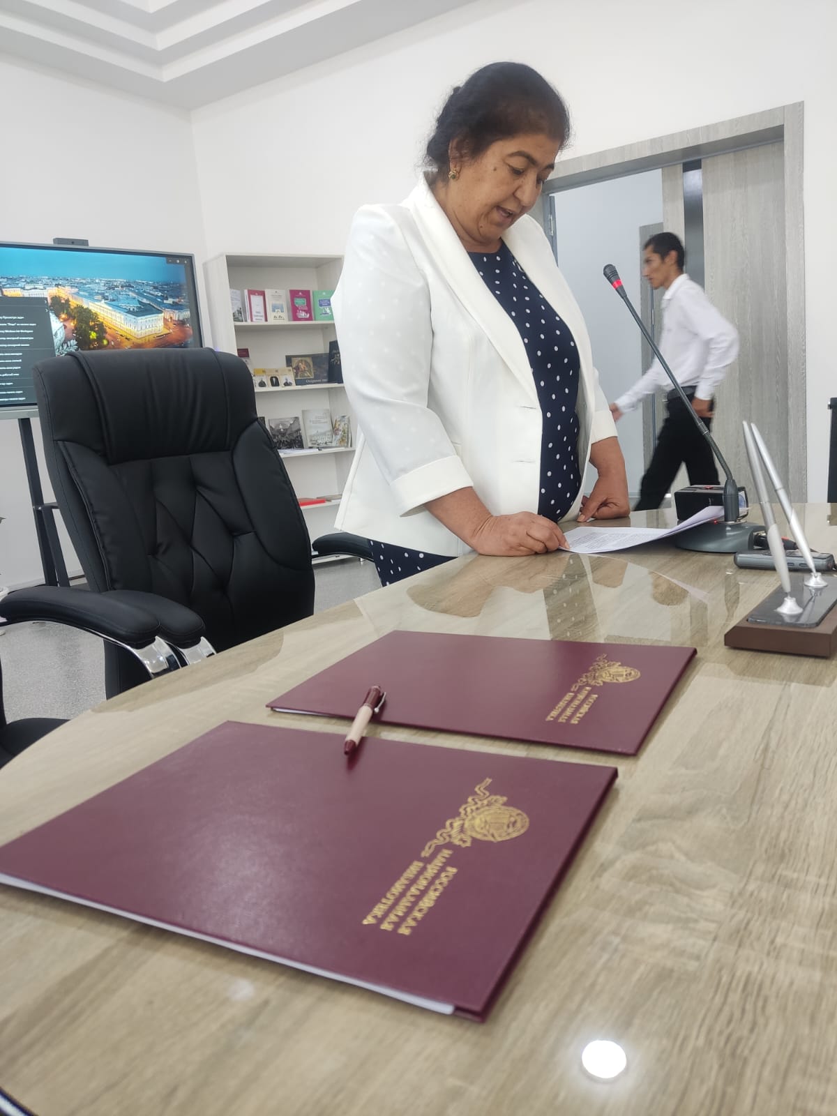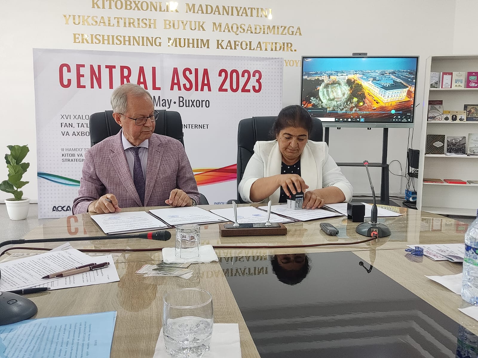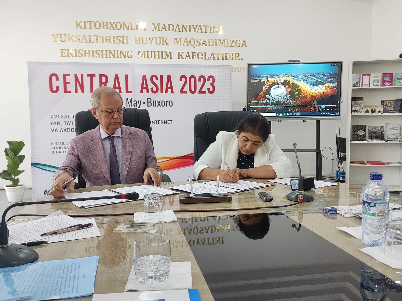В ходе заседания был подписан Меморандум о сотрудничестве между Российской национальной библиотекой и Бухарским библиотечно-информационным центром. Владимир Гронский также передал центру в дар издания РНБ.