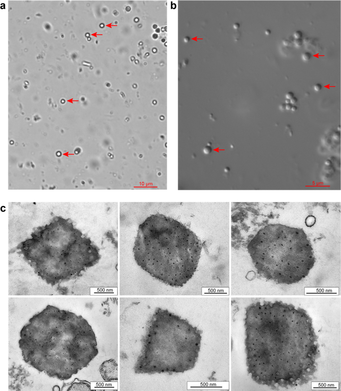 Изображения вирусных частиц, полученные методом световой (сверху) и просвечивающей электронной (снизу) микроскопии