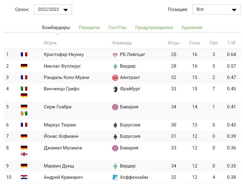 Завершен сезон в Бундеслиге. Лучшим бомбардиром с 16 голами сталКристофер Нкункуиз «Лейпцига».