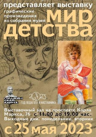 Общая атмосфера выставки «Мир детства» наполнена ощущением чистоты, искренности, света. Особо выделена тема сказок, ведь детство – мир фантазий, мечты, искренней веры в чудеса. Подобранные музейщиками иллюстрации к сказкам и эскизы к спектаклям кукольного театра П.А. Алякринского, Н.Г. Гольц, Т.И. Жуковой, И.В. Лепаловского и взрослую публику словно возвращают в прекрасный мир детства. Очень интересно представлен детский портрет. Художникам удалось найти удивительно тонкие и проникновенные изобразительные средства отражения детского мировосприятия. В работах А.Е. Соколенко, И.С. Ловянниковой, В.В. Додэ, С.П. Мягких детские образы очаровательно самобытны и эмоциональны.