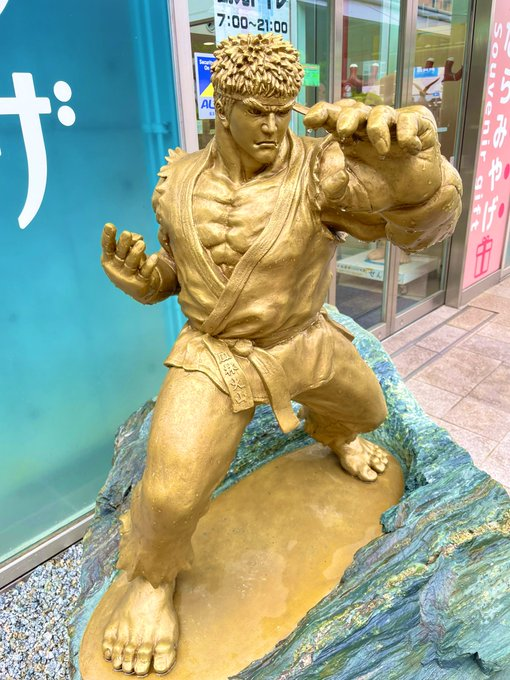 Статуя была установлена в городе Касихара в префектуре Нара. Место было выбрано совсем не случайно, Касихара является родным городом основателя Capcom, поэтому компания уже много лет занимается его развитием и интегрирует в него собственные проекты. В честь выхода Street Fighter 6 они решили установить детализированную скульптуру Рю, который является главным персонажем и лицом всей серии. Его статуя была установлена в историческом центре города возле одного из филиалов Capcom.
