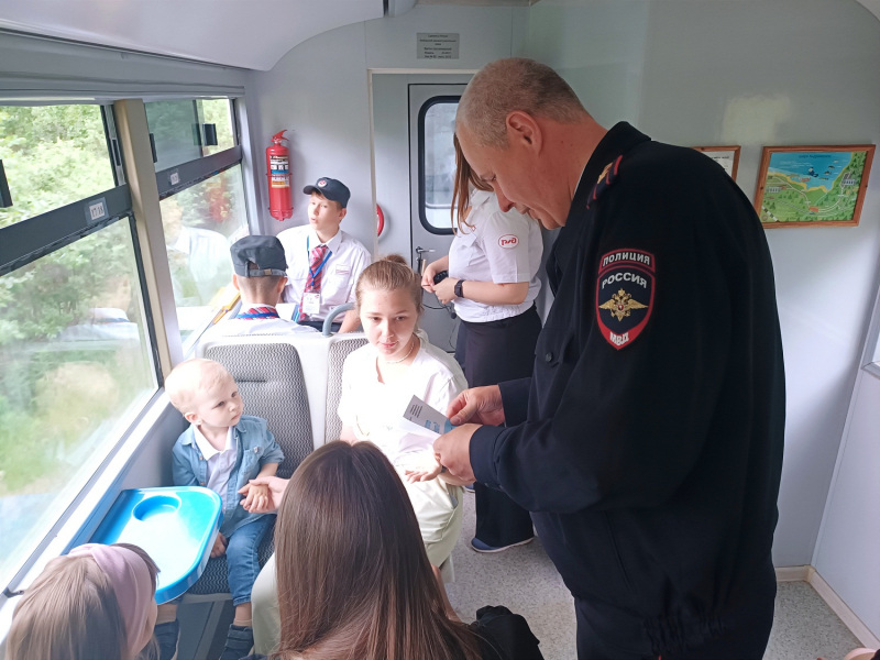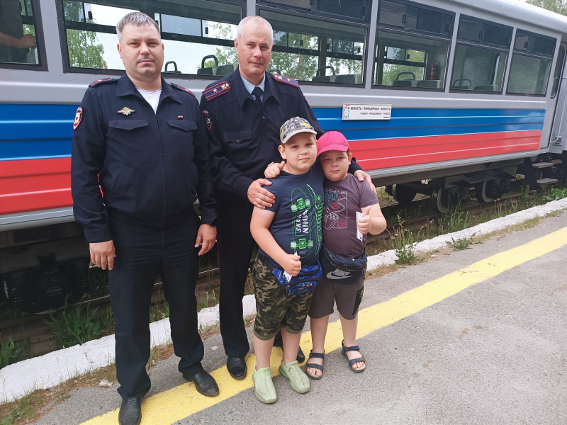 Все ребята, без исключения, в пути следования железнодорожного состава, состоящего из четырех вагонов, от полицейских получили памятки по правилам безопасного поведения на железнодорожном транспорте. А во время кратковременной стоянки мальчишки подробнее расспрашивали о полиции и фотографировались со стражами порядка.