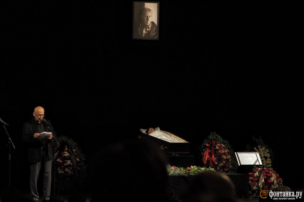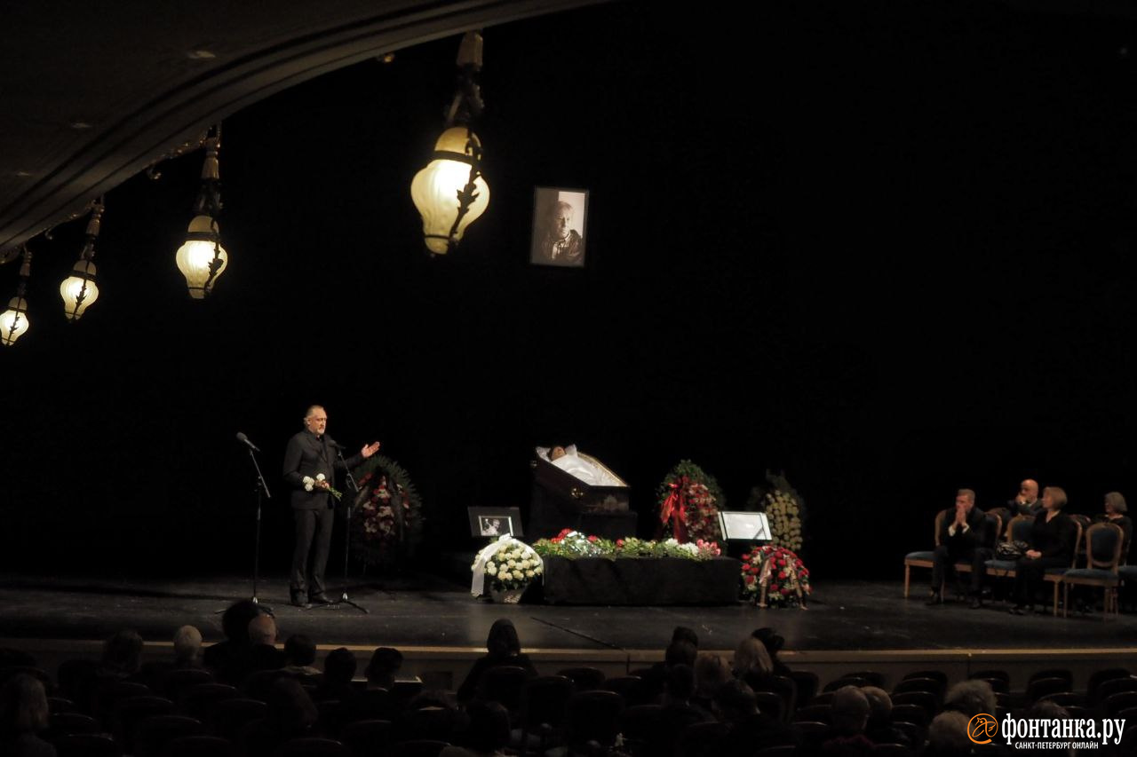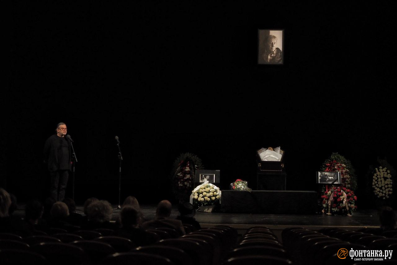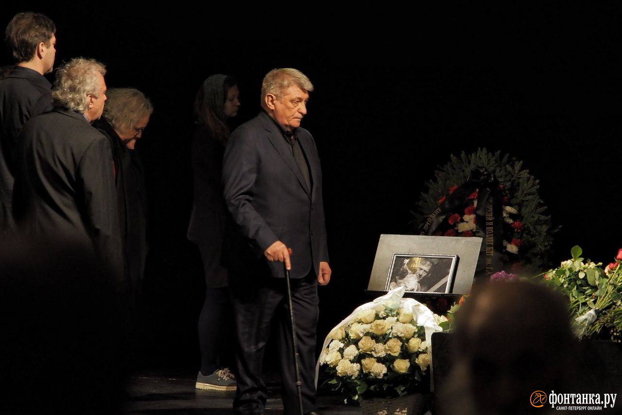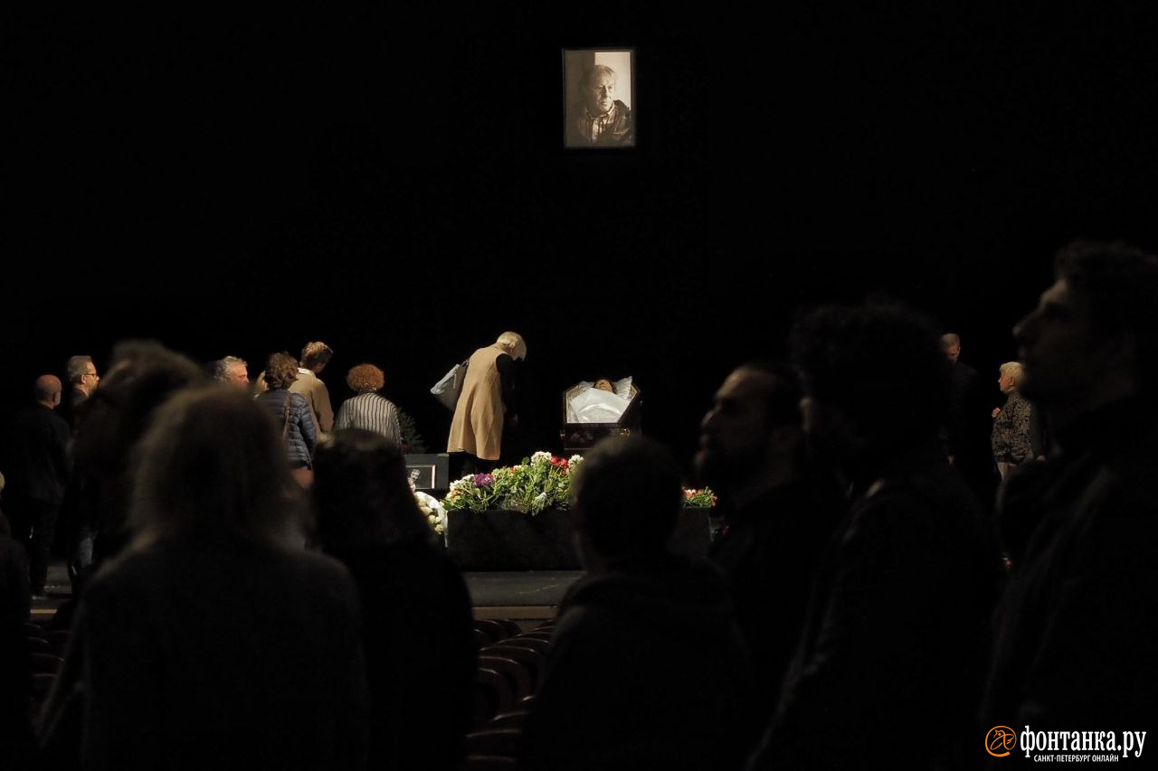 Александр Сокуров (российская премьера его фильма «Сказка» прошла на днях в «Севкабель Порту» на фестивале «Пример интонации») также был среди тех, кто пришел проститься. На сцену поднимались Сергей Мигицко, Николай Буров и другие известные люди театра и кино.