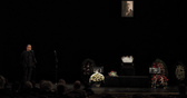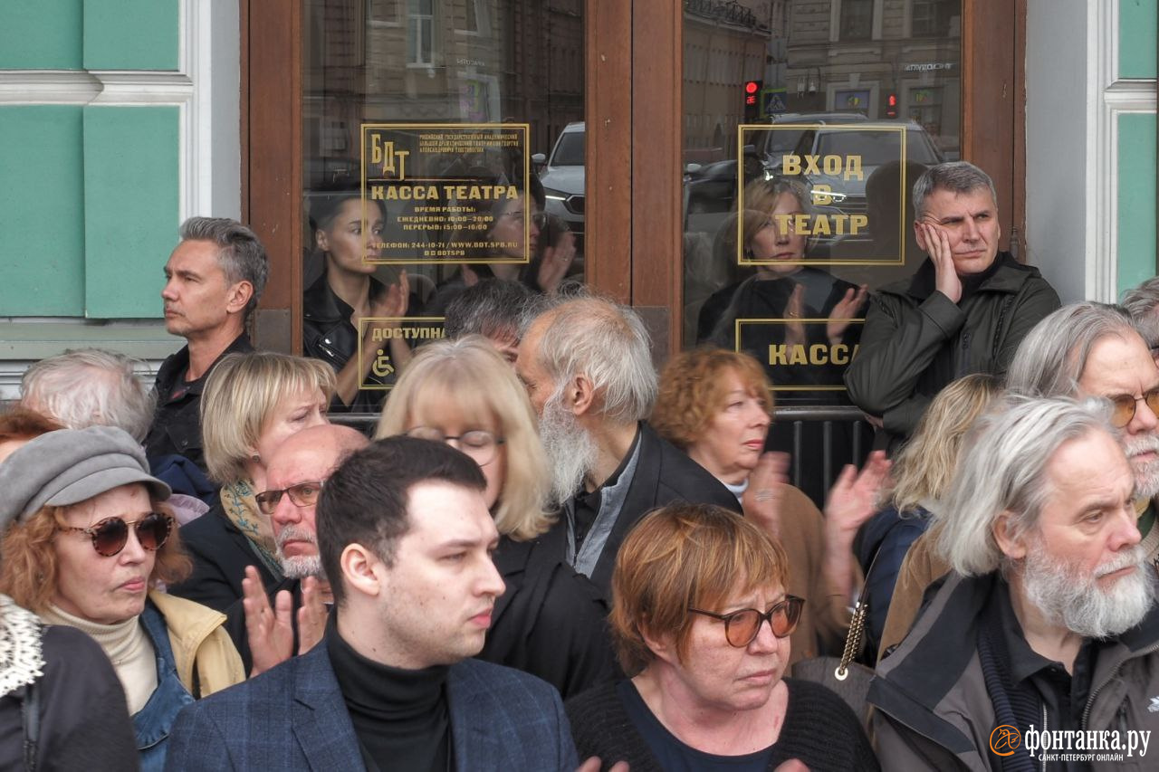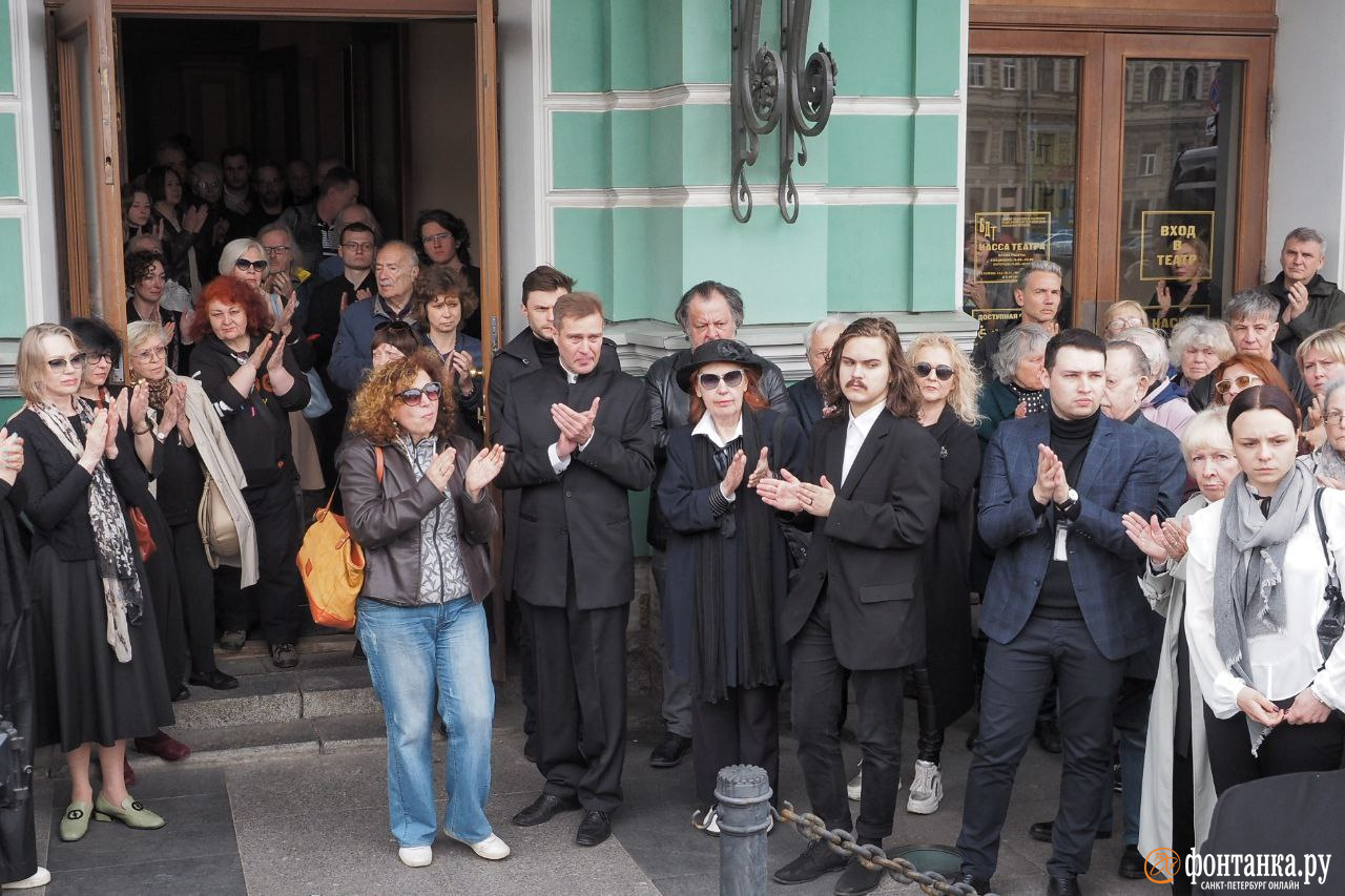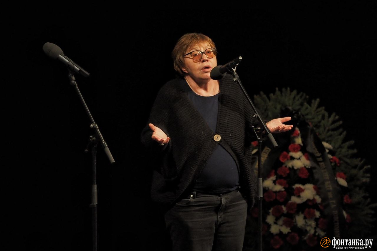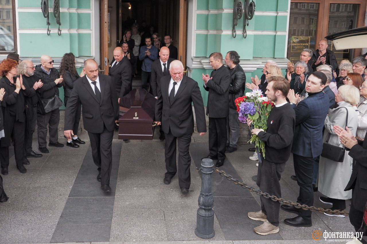 Александр Сокуров (российская премьера его фильма «Сказка» прошла на днях в «Севкабель Порту» на фестивале «Пример интонации») также был среди тех, кто пришел проститься. На сцену поднимались Сергей Мигицко, Николай Буров и другие известные люди театра и кино.