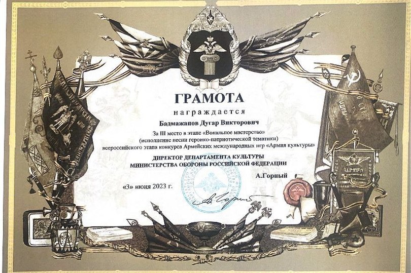 И вот одно из подтверждений - успех Дугара Бадмажапова на Всероссийском конкурсе армейских коллективов.