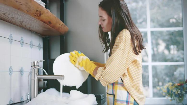 Использовать перчатки при мытье посуды