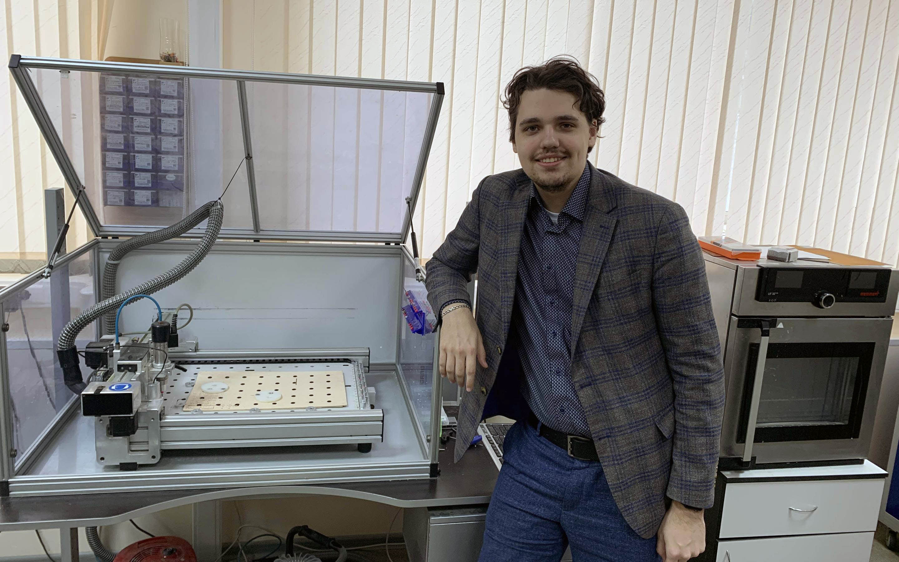 — MSLA-технология 3D-печати основана на использовании оптической системы, состоящей из источника ультрафиолетового излучения и жидкокристаллической матрицы. На ЖК-экран последовательно поступает изображение слоев изготавливаемой модели. Фотополимеризующаяся композиция затвердевает под действием ультрафиолетового света, проходящего через матрицу. Затем движущаяся платформа с сформированным на ней слоем поднимается для полимеризации следующего слоя. Тот же принцип можно использовать при производстве печатных плат: воздействовать на заготовку ультрафиолетовым светом, проходящим через матрицу, на которой находится изображение проводящего рисунка, — говорит инициатор проекта.