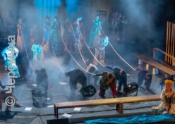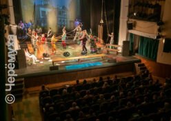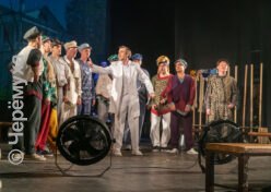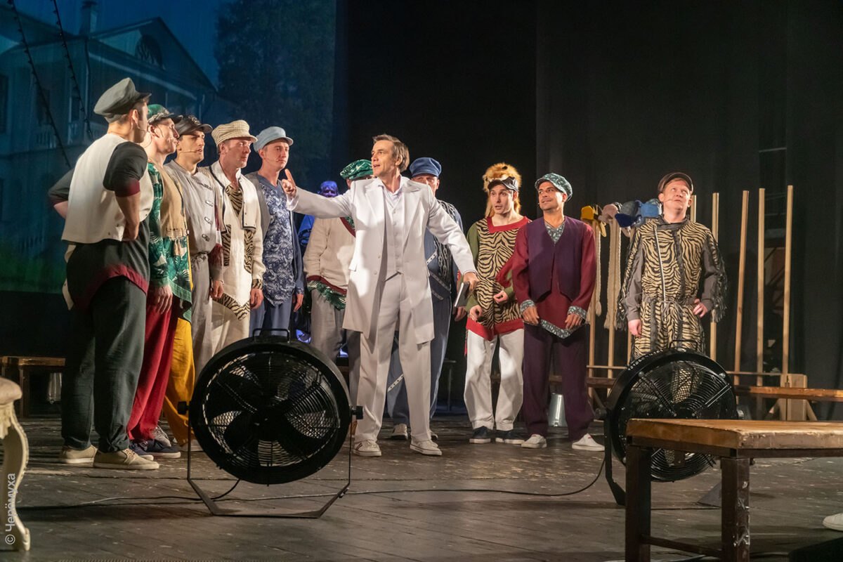 В фойе Рыбинского драматического театра звучат композиции, исполняемые муниципальным оркестром имени Шацкого. Гостей встречают худрук и директор Волковского театра — Валерий Кириллов и Герман Громов, а также Руслан Халюзов, руководитель РДТ.