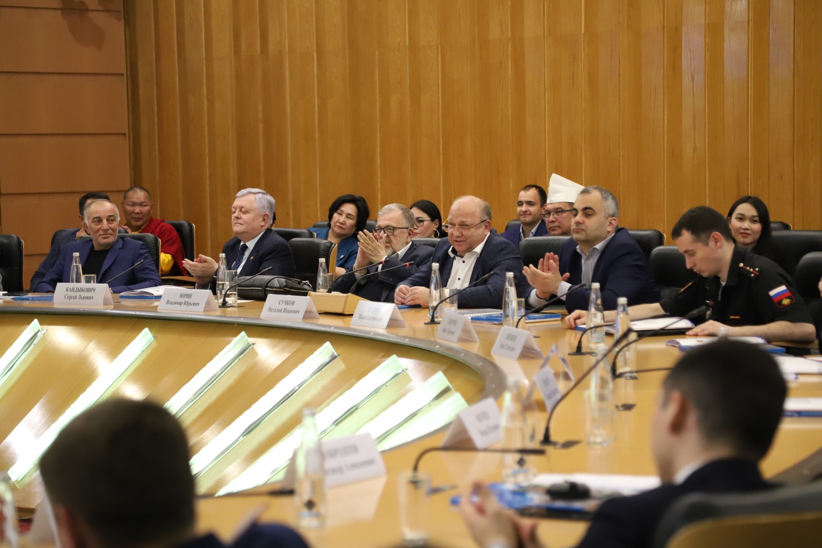 Открыл заседание руководитель Департамента национальной политики и межрегиональных связей города Москвы Виталий Сучков. Перед началом обсуждения вопросов повестки дня он вручил благодарности Мэра Москвы первому заместителю руководителя Представительства Правительства Забайкальского края при Правительстве Российской Федерации Очиру Дамдинову и члену Региональной общественной организации «Общество бурятской культуры “Уряал”» Александру Гармаеву (награду от его имени получил председатель организации Батор Дугаров) «за вклад в укрепление межрегионального сотрудничества и активное участие в проведении социально значимых мероприятиях в городе Москве».