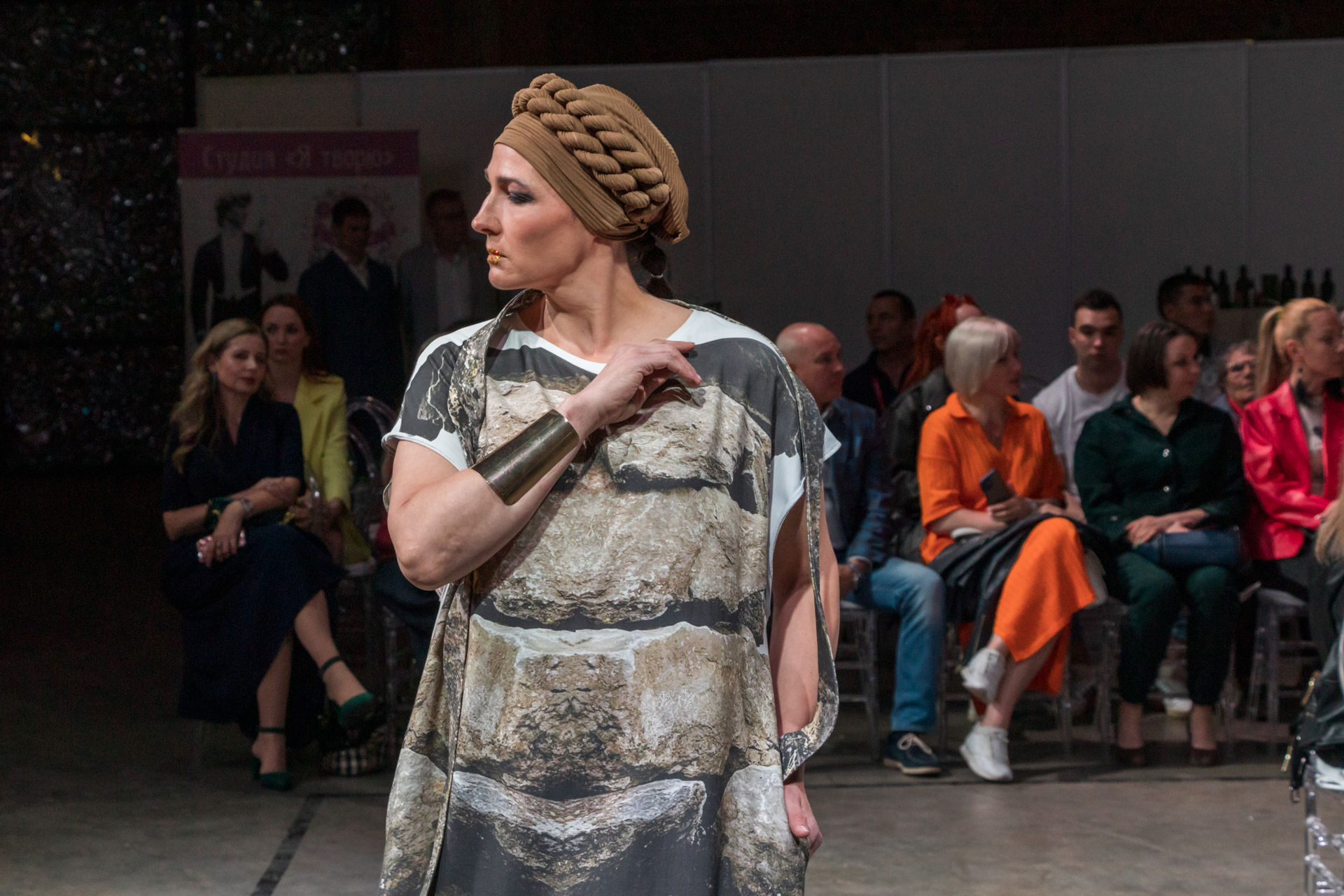 Жюри конкурса высоко оценило не только необычные принты, летящие ткани и свободные силуэты, но и моделей, которые демонстрировали одежду. Эти женщины и по возрасту, и по комплекции были крайне далеки от среднестатистических моделей, однако благодаря макияжу и замысловатым золотым аксессуарам на подиуме они выглядели очень органично.