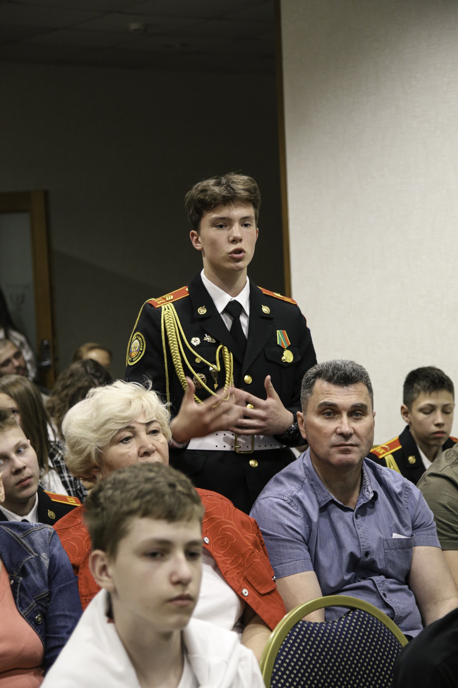 Василий Пасечник обратился к собравшимся с напутственным словом. Он отметил, что сам, как и один из организаторов мероприятия Максим Реснянский, служил в 1-м отдельном стрелковом Семеновском полку, от военнослужащих которого поступило большое число вопросов. Также активно во время дискуссии себя показали кадеты школы-интерната № 5 «Преображенский кадетский корпус».