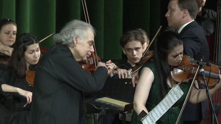 Ради этого концерта объединились оркестранты из России и Казахстана. Сборный струнный оркестр репетировал несколько дней, прежде чем встретиться с тем, на кого равняются скрипачи. Во всем мире Захар Брон известен как исключительный педагог по скрипке – не просто школа, а отдельная философия. В разных странах – академии и школы его имени. Маэстро Брон – один из немногих, кто может предсказать блестящее будущее. С лучшими учениками сам выходит на сцену. "Параметр один: в нашем деле, в нашем искусстве не может быть предела совершенству. И тот, кто мыслит, что они уже верх всего, то это уже начало деградации. Но у меня таких не бывает", – отметил скрипач, народный артист России Захар Брон.