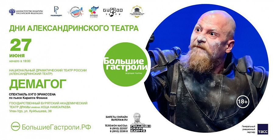 Большие Гастроли Александринского театра в Улан-Удэ организованы в формате «Дней Александринского театра». На Малой сцене Бурятского академического театра драмы им. Хоца Намсараева состоятся: актерский тренинг, мастер-классы, открытый разговор: