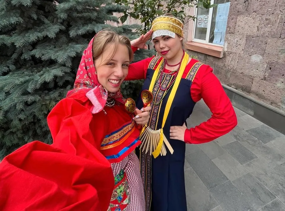 Сейчас в Армении знакомят детей с русской культурой добровльцы Юлия и Анастасия – выпускницы Владимирского Областного колледжа культуры и искусства (ВОККИ) по специальности этнохудожественое творчество.