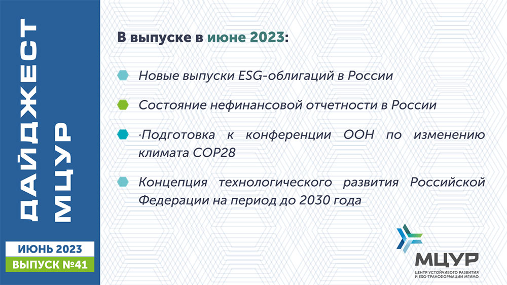 Дайджест Центра устойчивого развития и ESG-трансформации МГИМО — постоянный информационный источник, аккумулирующий основные мировые и российские новости устойчивого развития и ESG-трансформации, ответственного финансирования и климатической повестки. Оригиналы новостей доступны по активным ссылкам в тексте.