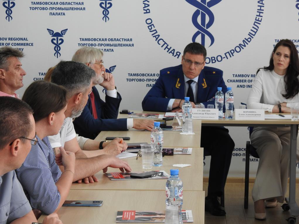 Сегодня состоялась открытая встреча прокурора Тамбовской области Александра Гулягина с представителями бизнес-сообщества. Мероприятие организовано Тамбовской областной торгово-промышленной палатой и прокуратурой области.