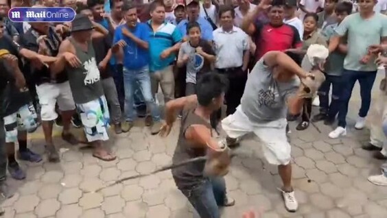 Религиозный ритуал, в котором нужно лупить противника высушенным бычьи пенисом, прошёл на днях в Никарагуа. Мужчины, некоторые женщины и дети в честь Святого Иоанна Крестителя искупают таким образом грехи. Рассечённый бычий половой орган тут используется в качестве плети. Самобичевание католиков за века трансформировалось тут в причудливые поединки на пенисах.