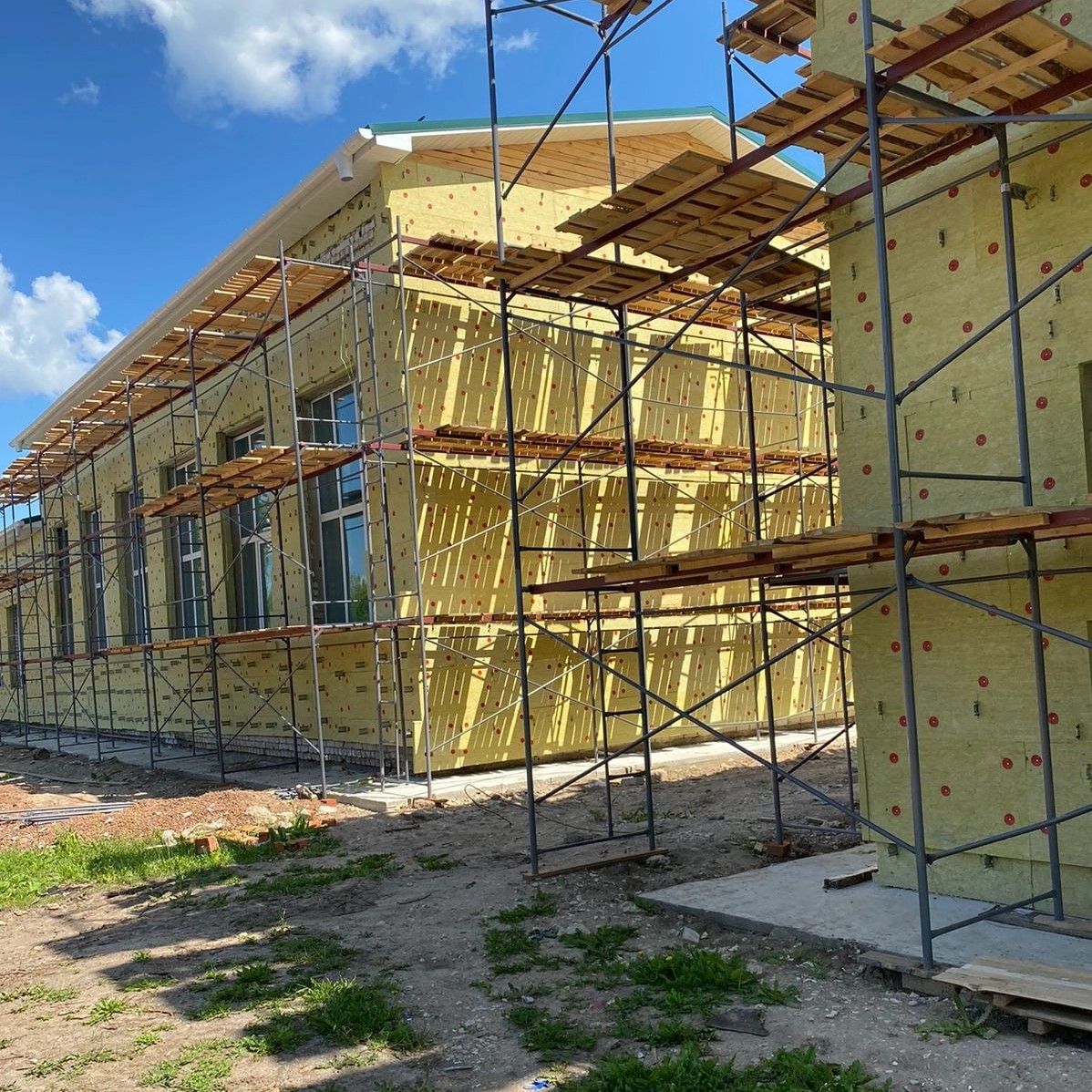 На данный момент в здании проведен демонтаж внутренних дверных коробок по всей школе, разборка покрытий полов, расчистка поверхностей стен от старых покрасок, побелки. Продолжается оштукатуривание стен, демонтаж раковин и унитазов в санузлах, монтаж электропроводки, молниезащиты, пожарной сигнализации и многое другое.