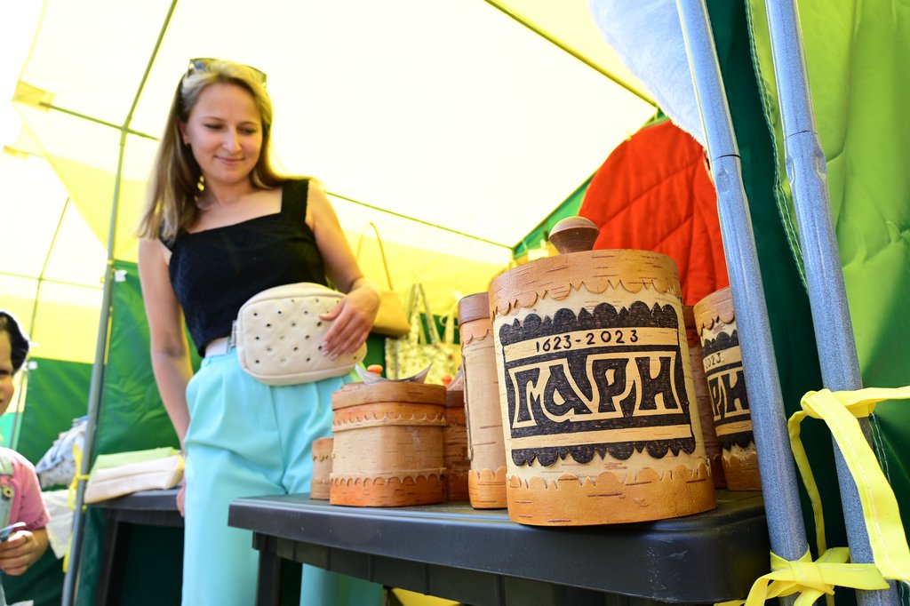 «В этих берестяных изделиях можно хранить крупы, травы, мед. Материал бережно собирается, выжигается. Папа живет в Гарях, а я теперь живу в Екатеринбурге — там училась, осталась работать. Сюда привезла, кстати, и свои изделия из натуральной и экокожи, — рассказывает Александра. — На самом деле я еще не все в поселке успела увидеть, мне говорили, что тут много изменений. Обязательно все посмотрю, сфотографирую! А по поводу такого масштабного праздника — если честно, мы все не ожидали, получилось действительно здорово».
