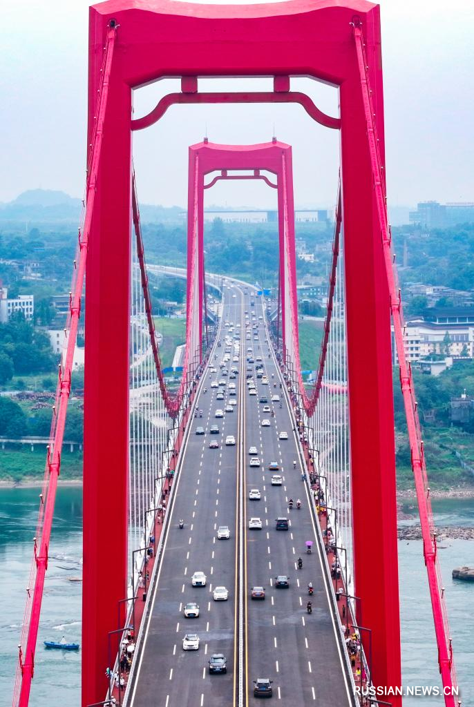 Лучжоу /пров. Сычуань/, 2 июля /Синьхуа/ В субботу был официально введен в эксплуатацию второй мост через реку Янцзы в городе Лучжоу провинции Сычуань на юго-западе Китая. Длина нового моста составляет 1016 метров, а длина его главного пролета 576 м.