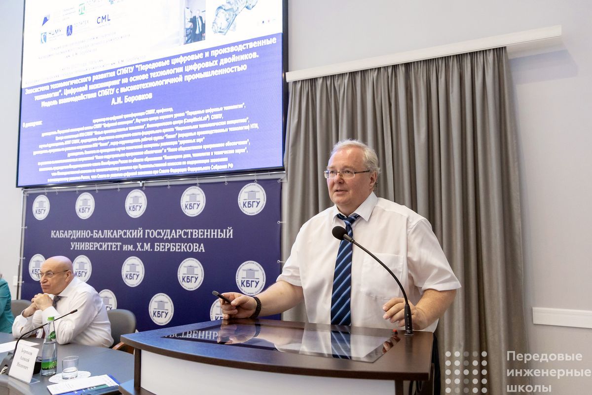 Свое выступление Алексей Боровков начал с рассказа о тесном сотрудничестве подразделений Экосистемы технологического развития СПбПУ и КБГУ:
