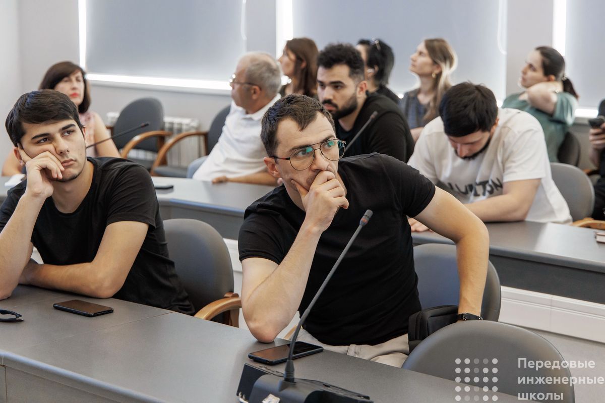 Алексей Боровков подчеркнул важность данной программы, однако отметил, что сегодня важно выпускать не просто IT-специалистов, а профессионалов, владеющих предметной областью: яркий пример – инженеры ПИШ СПбПУ. Отвечая на многочисленные вопросы о подготовке кадров, а также разработках, опережающих мировой уровень, спикер рассказал о мультидисциплинарном подходе при создании любого продукта: «Все основано на принципе мультидисциплинарности и кросс-отраслевом характере работы. Работая с одной отраслью, мы можем переносить лучшие практики и решения на другую отрасль, которая с ними пока не знакома. Отрасли и секторы промышленности развиваются неравномерно, с разной скоростью, и когда ты работаешь сразу с 10 высокотехнологичными отраслями, ты имеешь возможность эти практики изучать, обобщать и осуществлять кросс-отраслевой трансфер на основе мультидисциплинарных математических моделей».
