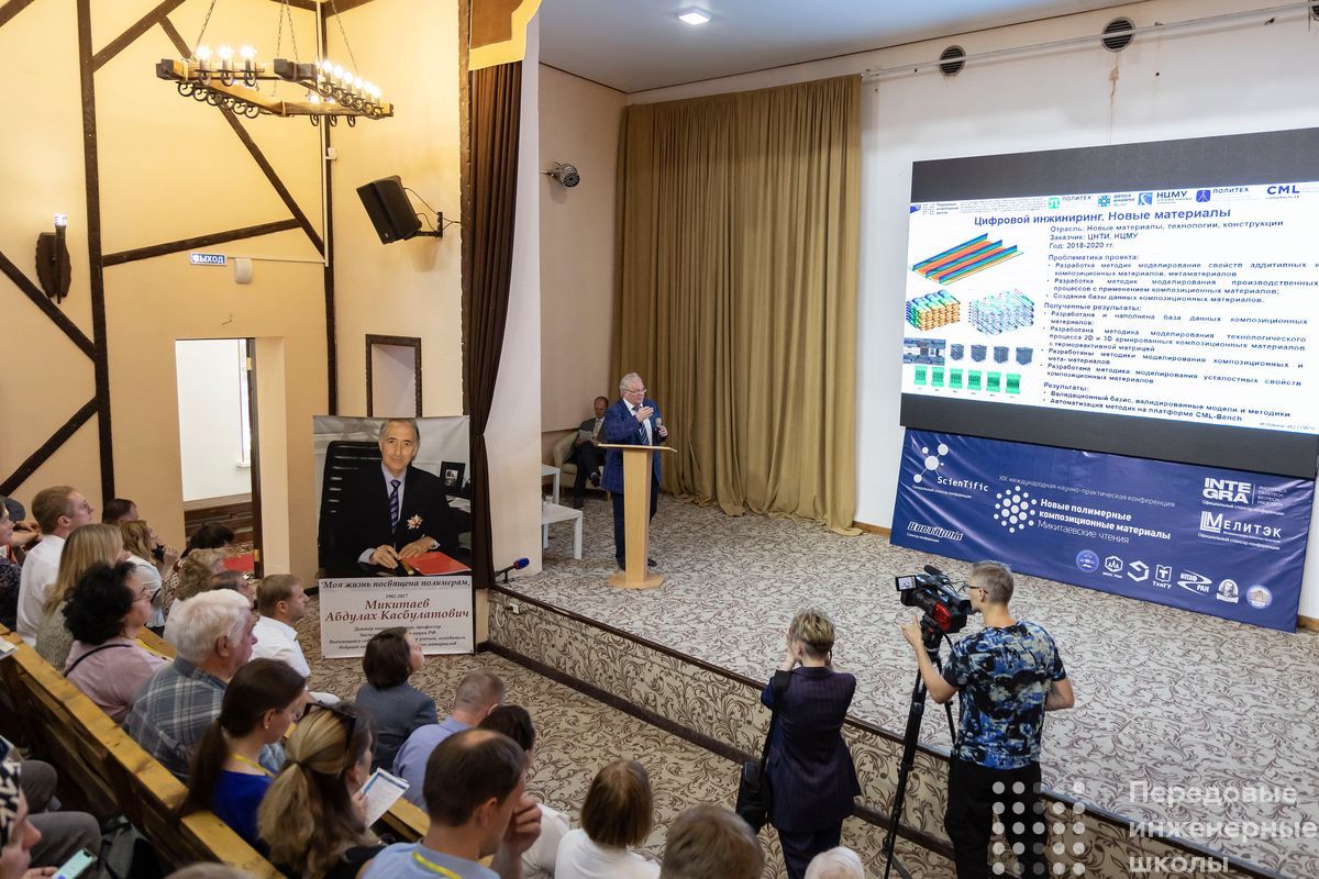 Особое внимание было уделено созданию цифровых двойников материалов и изделий на цифровой платформе CML-Bench®. Так, Алексей Иванович рассказал о разработке виртуальных испытательных стендов и виртуальных испытательных полигонов для компьютерного моделирования механических свойств металлопластиковых узлов с учётом технологии их изготовления, свойств пластика и адгезии пластика с металлом в интересах ООО «Центротех-инжиниринг» (входит в контур управления Топливной компании «ТВЭЛ» Госкорпорации «Росатом»).