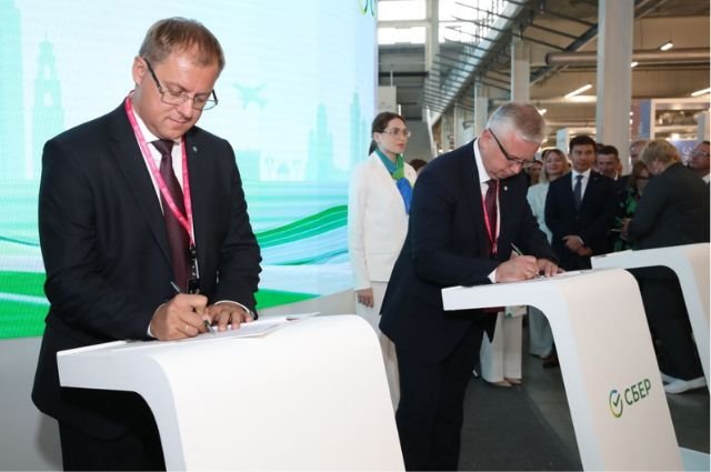 Соглашение на 13-й международной промышленной выставке ИННОПРОМ подписали начальник СвЖД Иван Колесников и председатель Уральского банка Сбербанка Дмитрий Суховерхов.