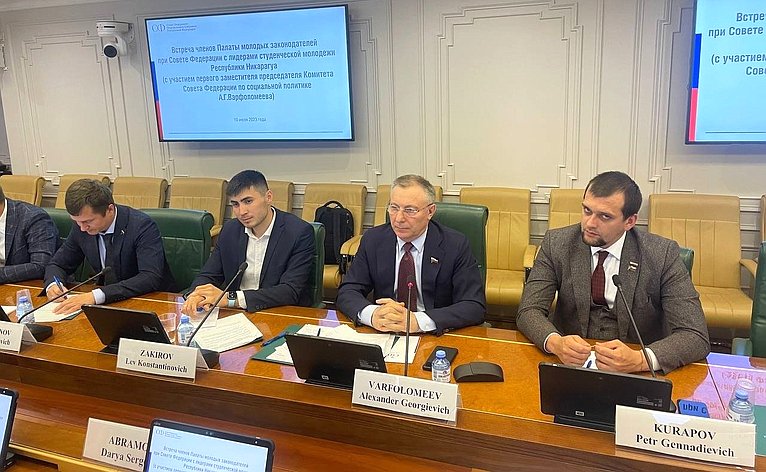 Первый заместитель председателя Комитета СФ по социальной политике, координатор Палаты молодых законодателей (ПМЗ) при Совете Федерации Александр Варфоломеев провел встречу с членами студенческого сообщества из Республики Никарагуа, проходящими обучение на территории Российской Федерации. В мероприятии приняли участие заместитель председателя Палаты молодых законодателей Лев Закиров, председатель Комитета по международным делам ПМЗ Андрей Раззоренов, член Комитета ПМЗ Петр Курапов, члены Палаты молодых законодателей.