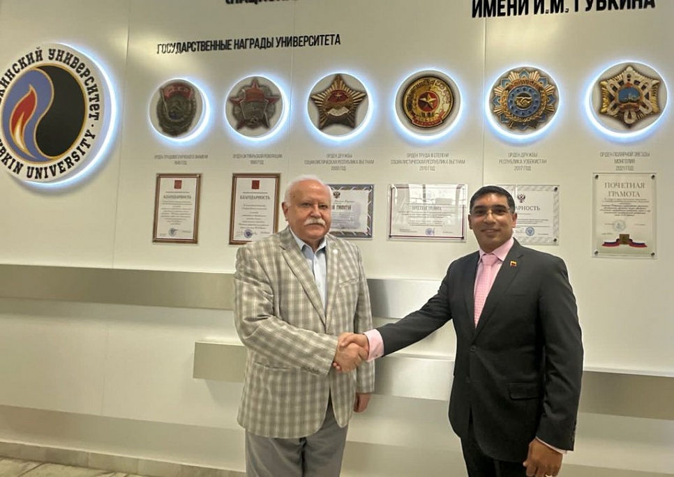 В ходе встречи стороны обсудили перспективы сотрудничества в области образовательных и научных программ и проектов, среди которых наиболее востребованными являются обучение студентов из Венесуэлы в Губкинском университете по направлению «Нефтегазовое дело», подготовка специалистов компании PDVSA по программам дополнительного профессионального образования в области переработки нефти и газа, а также возможность прохождения практики студентами Губкинского университета в компании PDVSA.