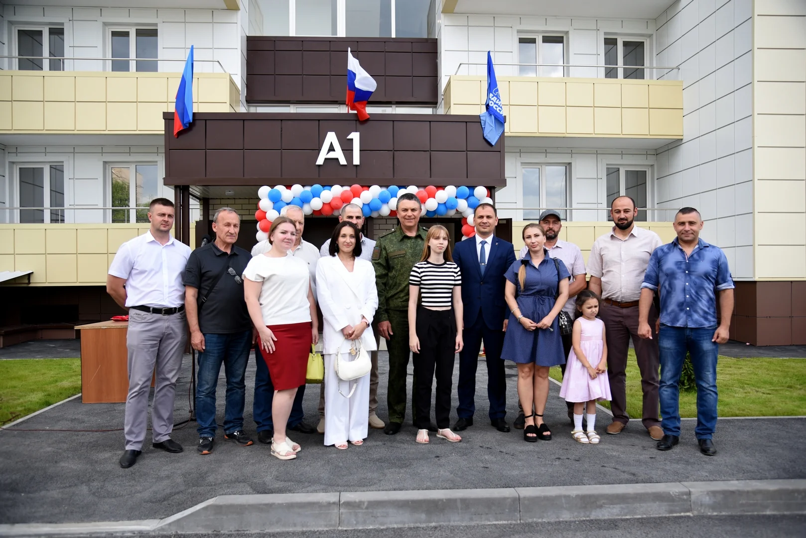 Вручить ключи семьям и поздравить новоселов приехали заместитель руководителя Федерального казначейства Эли Исаев, гендиректор компании «Единый заказчик в сфере строительства» Карен Оганесян, врио Главы ЛНР Леонид Пасечник и Глава администрации города Алчевска ЛНР Альберт Апшев.