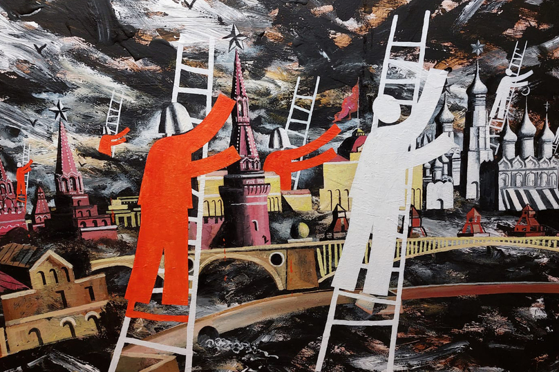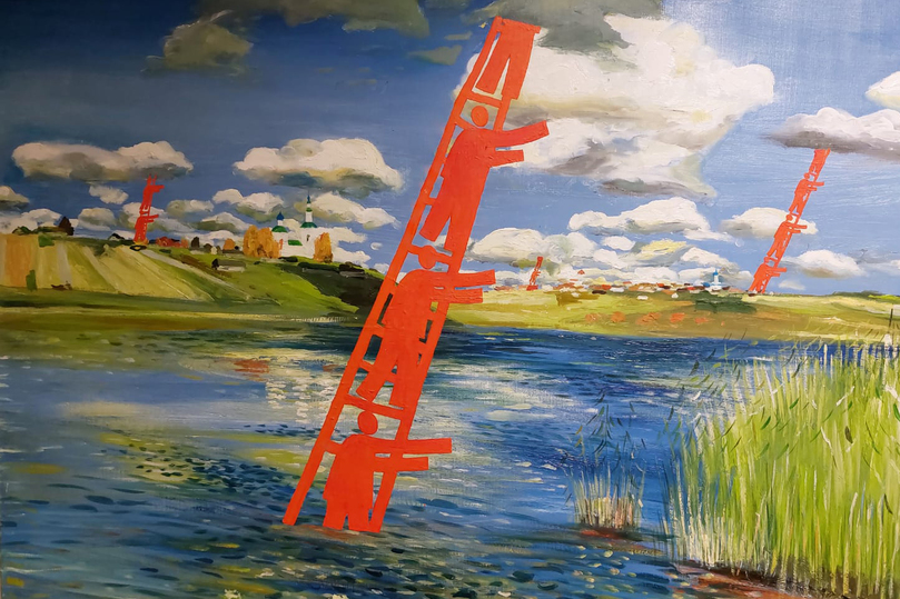 Название выставки «Левитация» совсем не случайно. Это слово можно трактовать как устойчивое положение объекта в гравитационном поле, в то время как контакта с другими объектами не наблюдается. Так и тут – автор картин будто бы парит над всем привычным, вдыхая новые смыслы в творения своих предшественников.