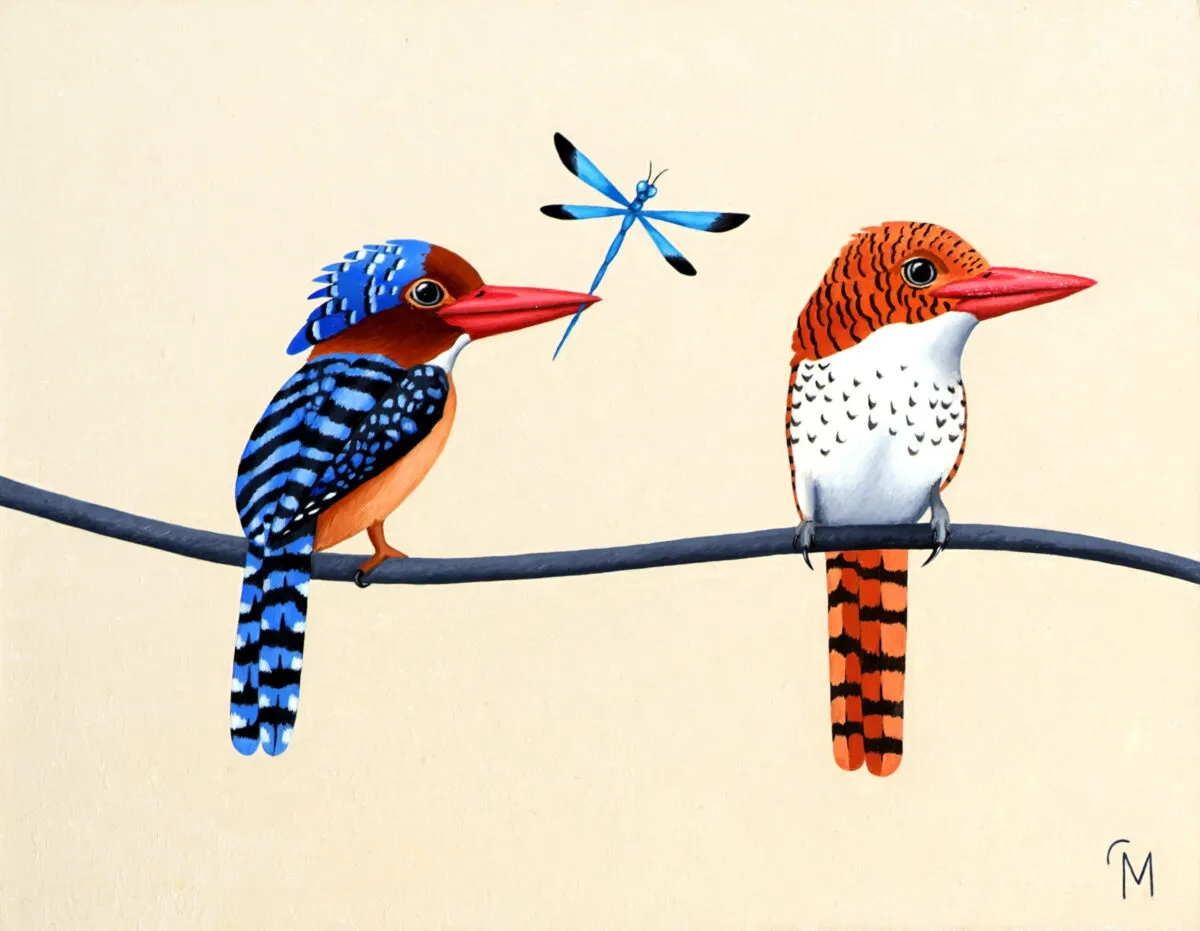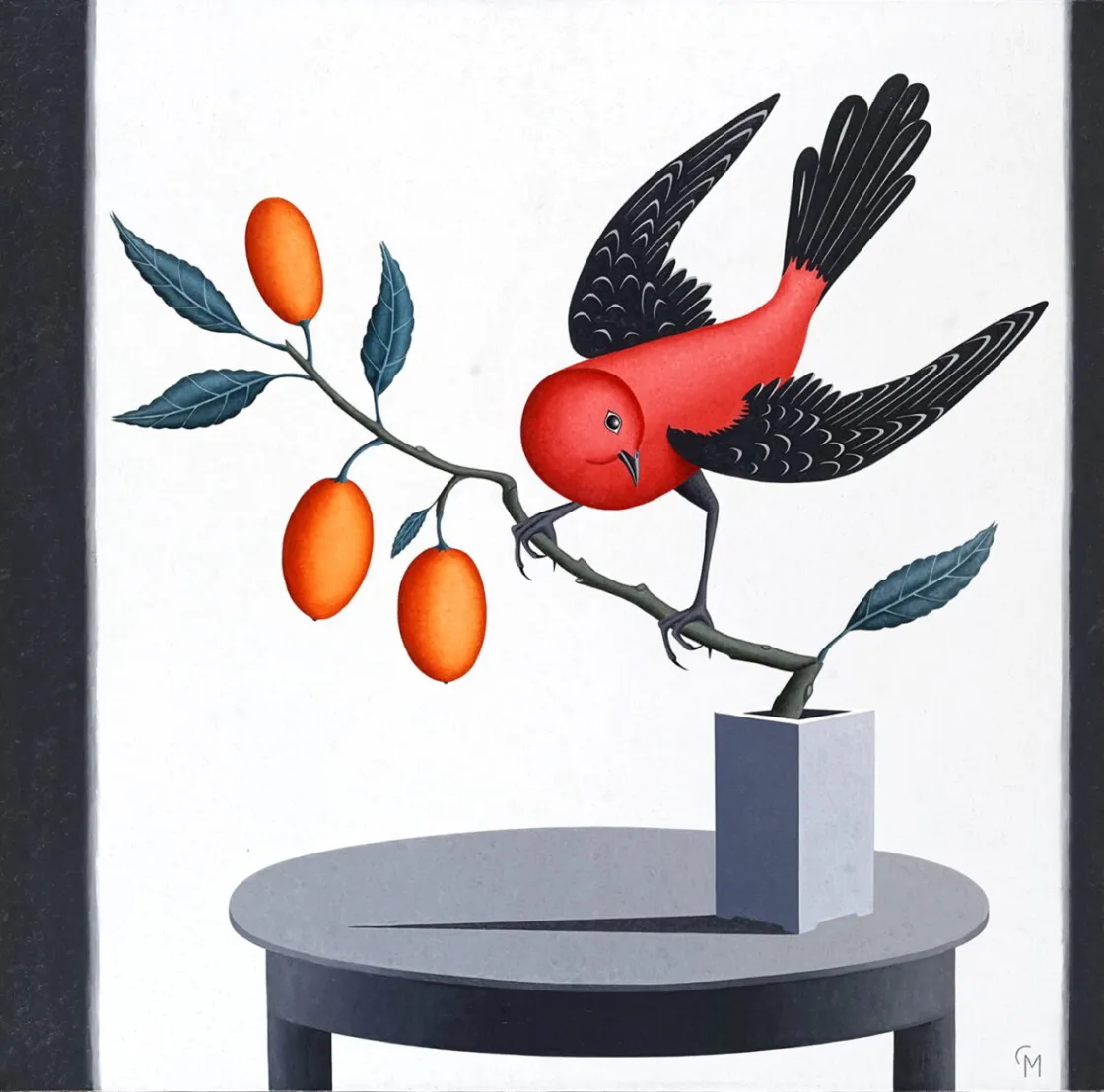 Принято считать, что птица — это символ чего-то нематериально-прекрасного, воплощение мечты и свободы. В центре Петербурга внимательный наблюдатель помимо привычных может обнаружить и хищных пернатых, и канареечно-желтых трясогузок, и зябликов. На полотнах Марии Снигиревской появляются и те, и другие — и даже экзотические птицы. Яркие и броские, они резко контрастируют с абстрактным светлым фоном. Он тоже появился неслучайно: художница вспоминает, что каждый год они с отчимом старались запечатлеть на снимках только что выпавший первый снег — никем не тронутый, он подчеркивал красоту города.