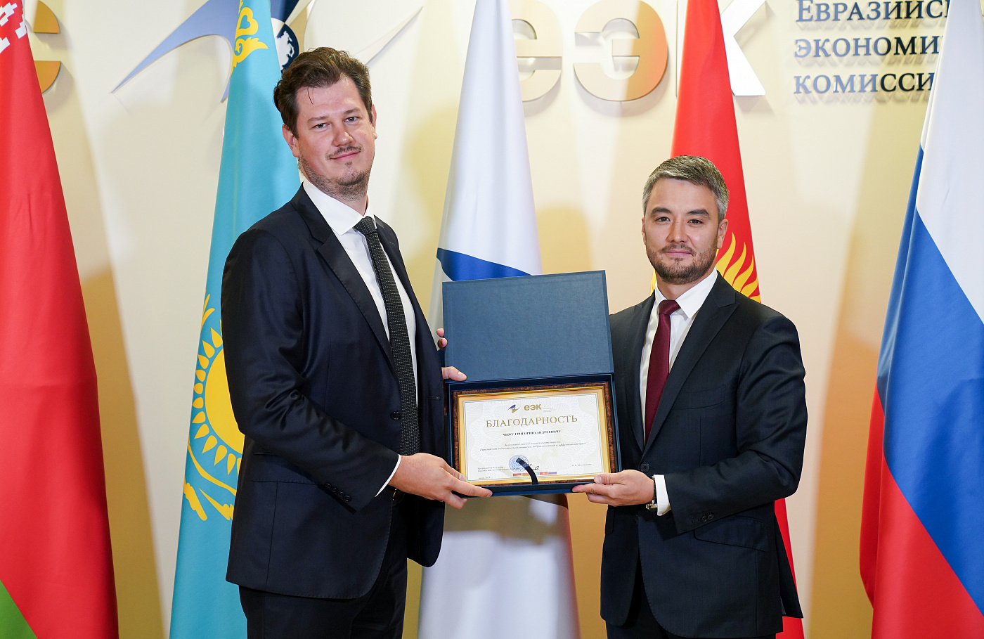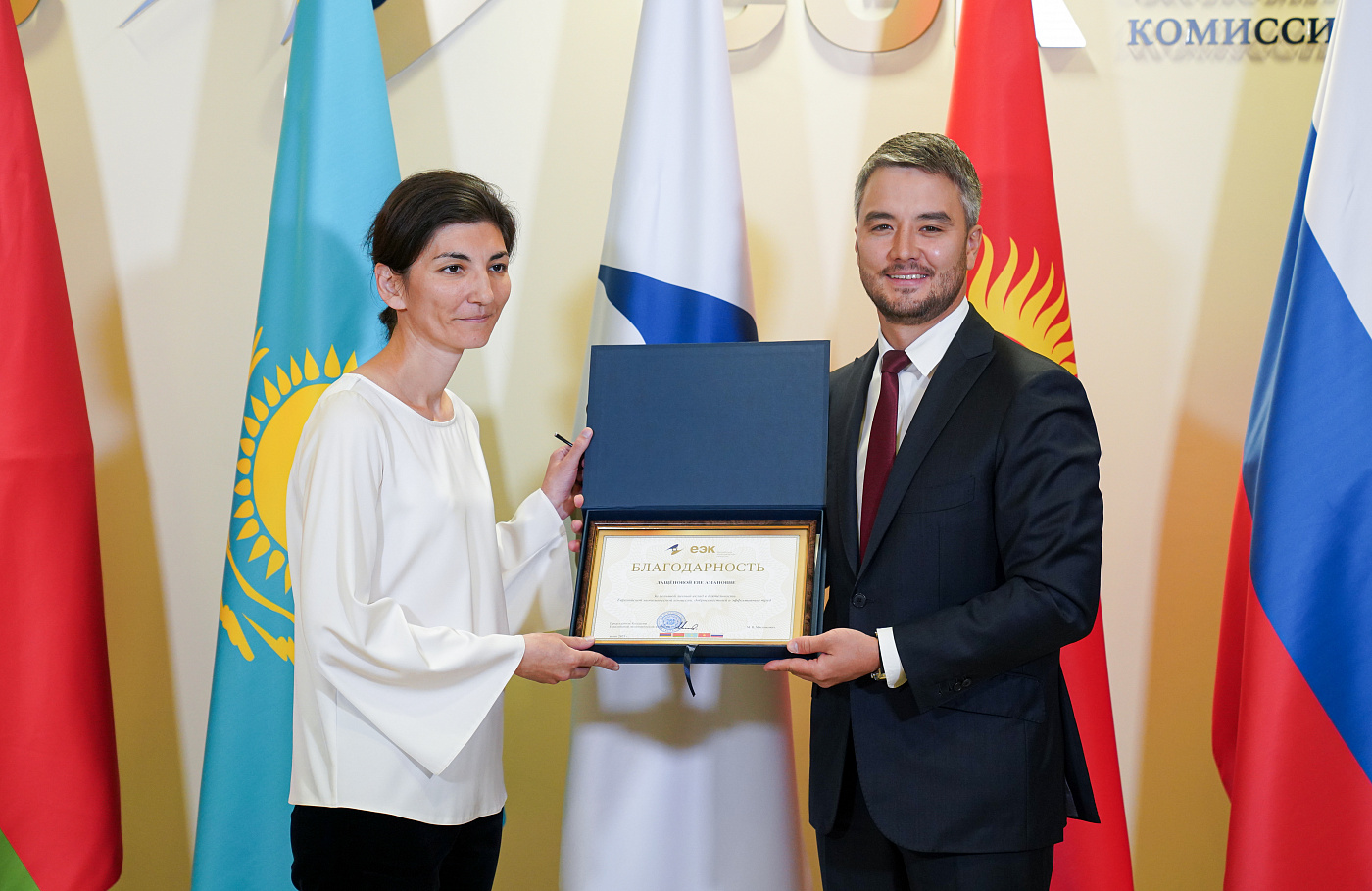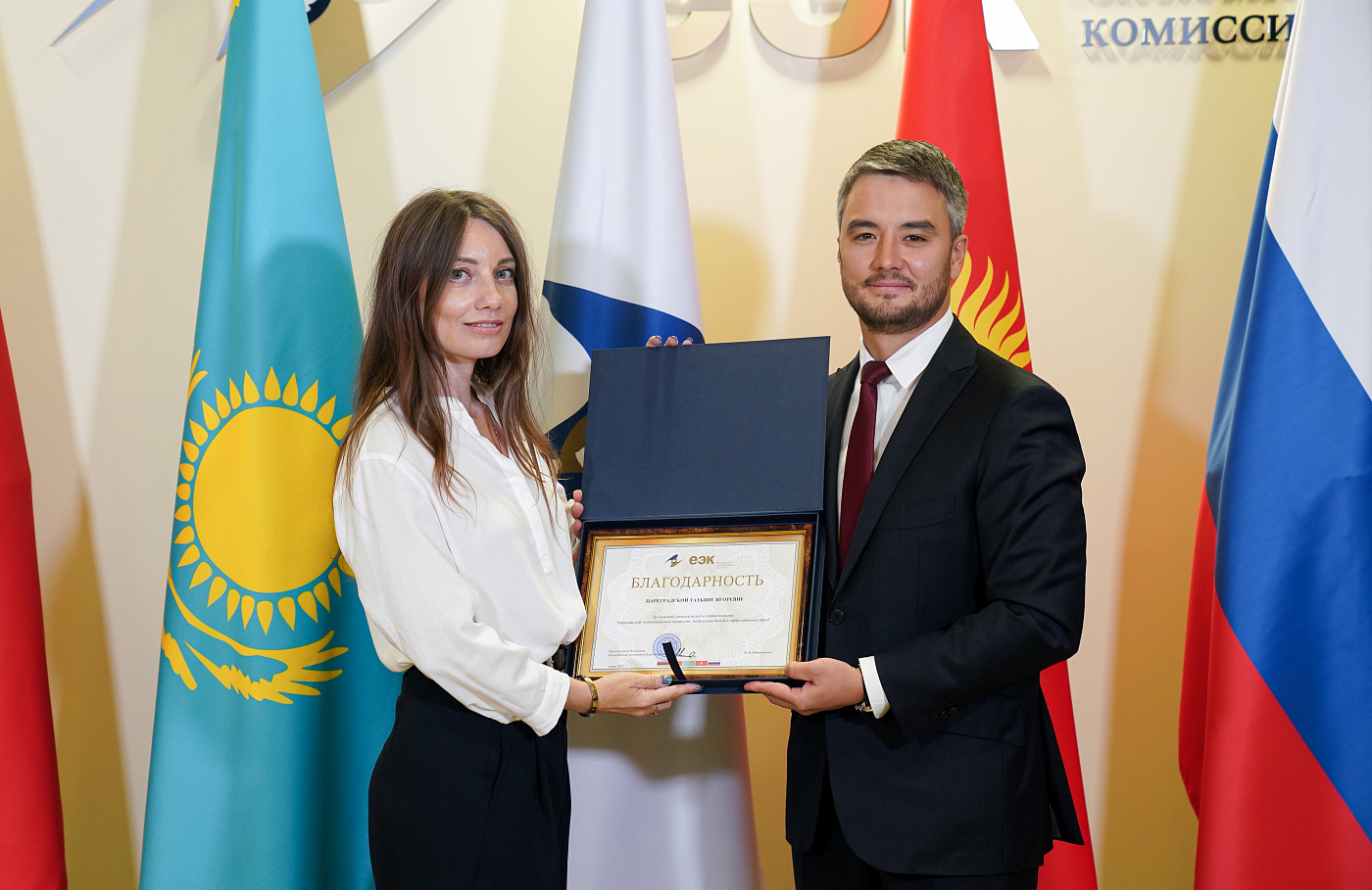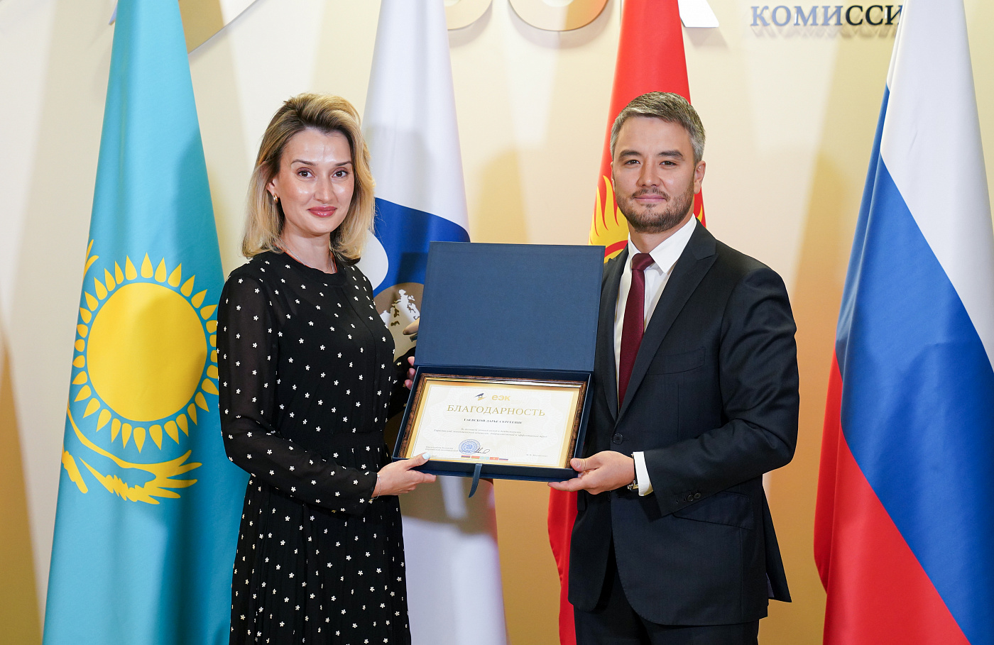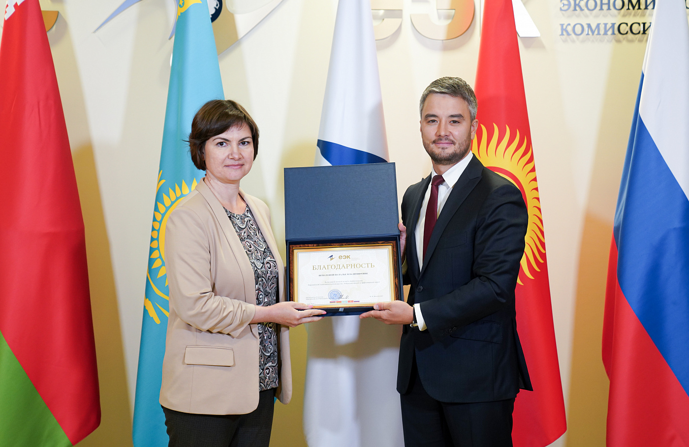 За активное участие в решении задач, стоящих перед Евразийской экономической комиссией, содействие развитию евразийской интеграции и личные достижения в исполнении должностных обязанностей Почетной грамотой Евразийской экономической комиссии награждены: