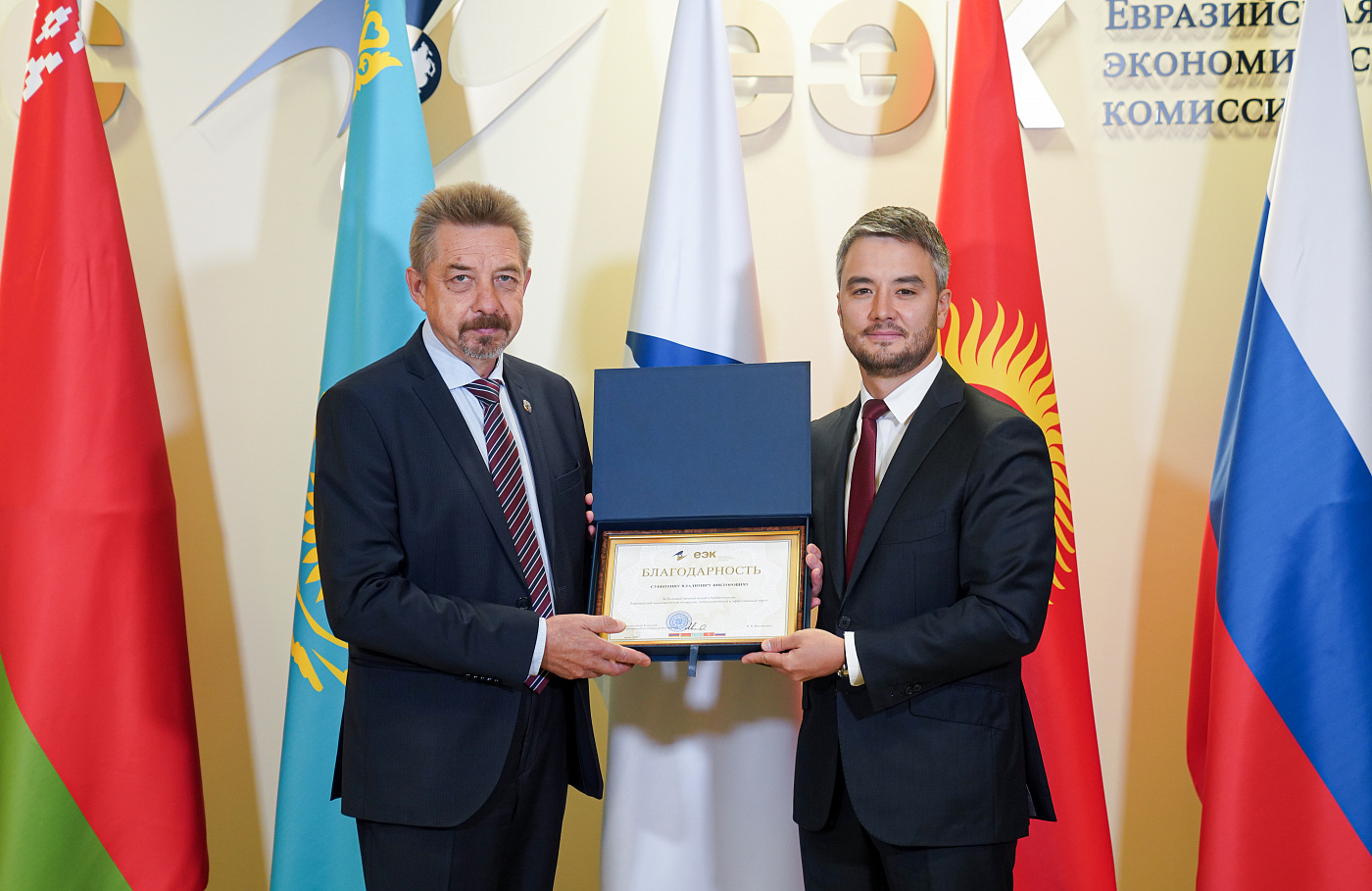 За большой личный вклад в деятельность Евразийской экономической комиссии, добросовестный и эффективный труд объявлена благодарность:
