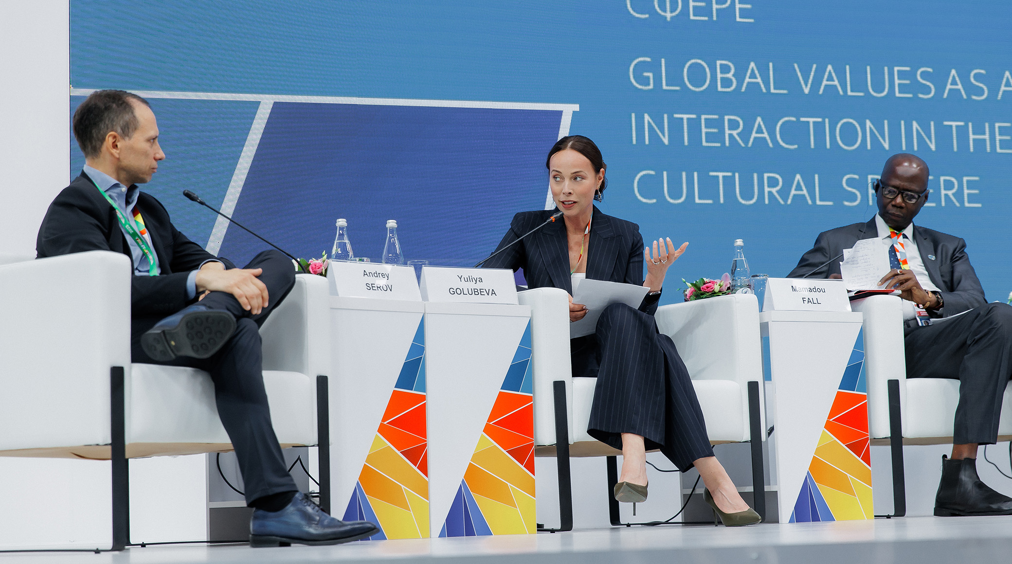 Заместитель генерального директора «Газпром-Медиа Холдинга» Юлия Голубева выступила на сессии «Глобальные ценности как основа взаимодействия в культурно-образовательной сфере» в рамках Экономического и гуманитарного форума Россия – Африка.